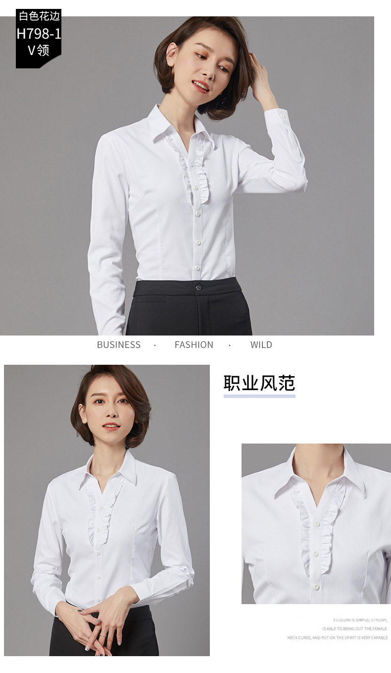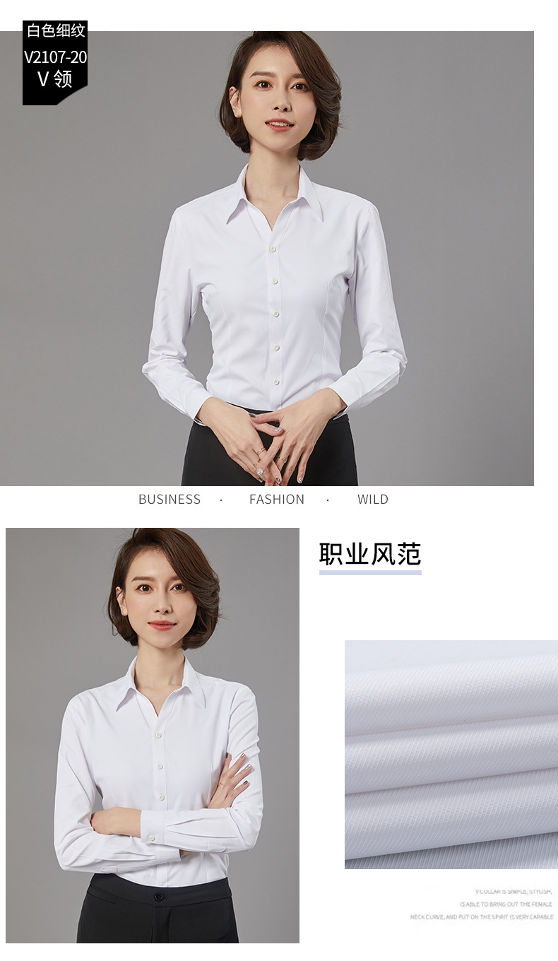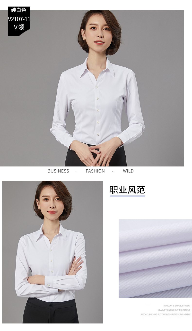 새로운 드레스 칼라 프로페셔널 블라우스 긴팔 비즈니스 슬림핏 슬리밍 인터뷰 브이넥 화이트 셔츠 통근 OL 베이스스토어 가기