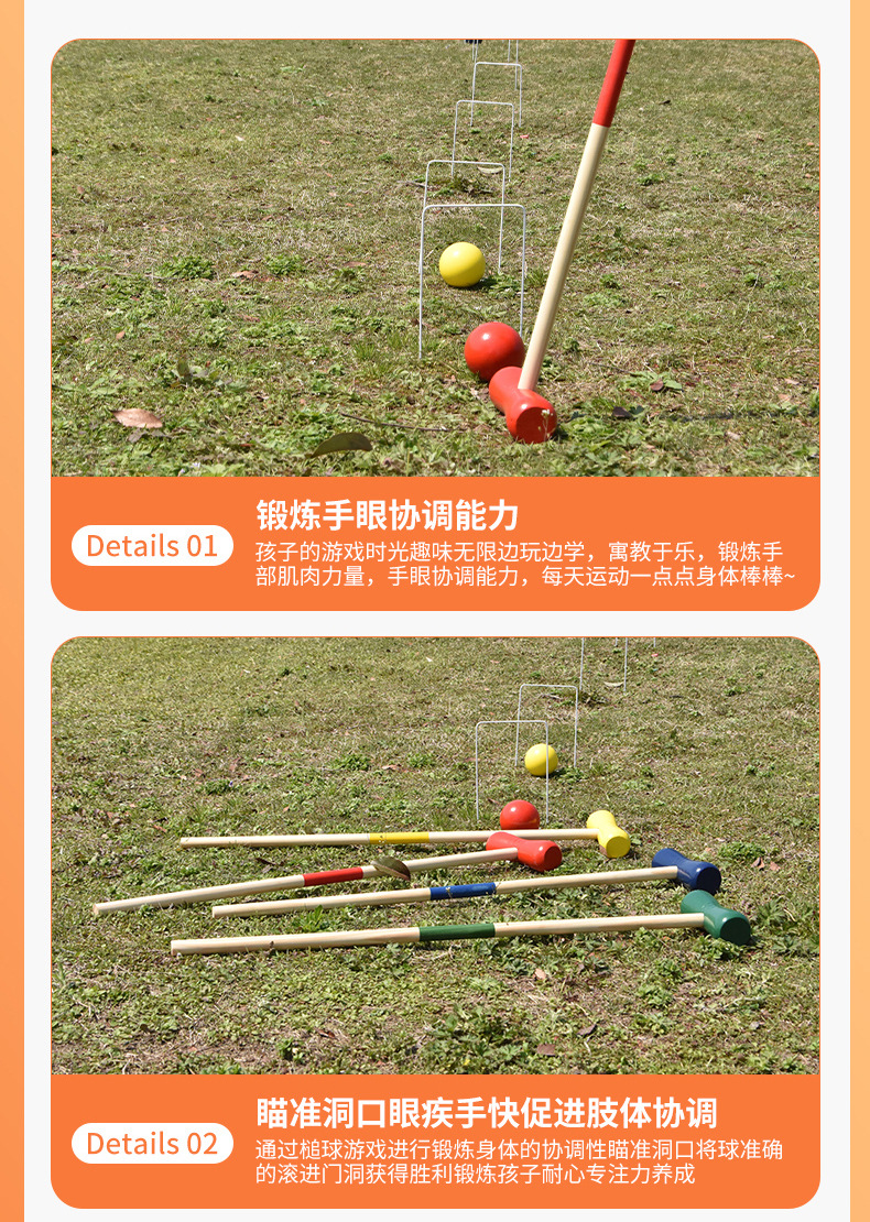 가족 게이트 볼 세트 야외 스포츠 어린이 훈련 조합 크로켓 컬러 케이드 크로켓 훈련 장난감스토어 가기