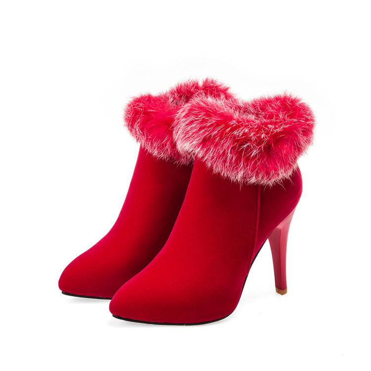 2016 가을 겨울 신상 마틴 부츠 얇은 굽 토끼털 숏부츠 사이드 지퍼 우아한 여성용 다용도 부츠 도매