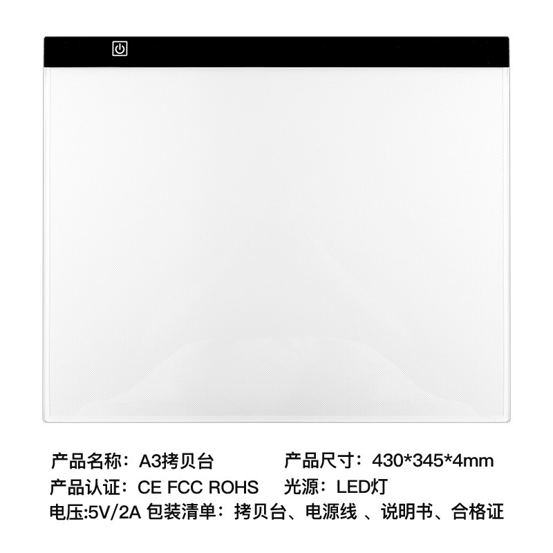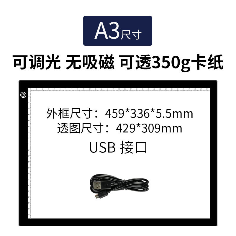 • A3-4 트레이싱 라이트 박스 (무단계 밝기 조절, 눈금 없음) + 1.5m USB 케이블