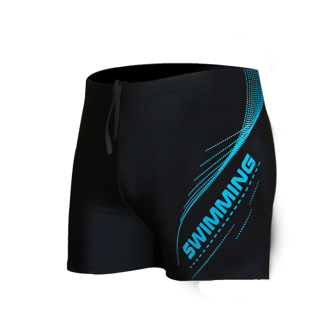 极扬纯黑色速干泳裤男平角温泉简约保守款高弹涤纶男士游泳衣批发