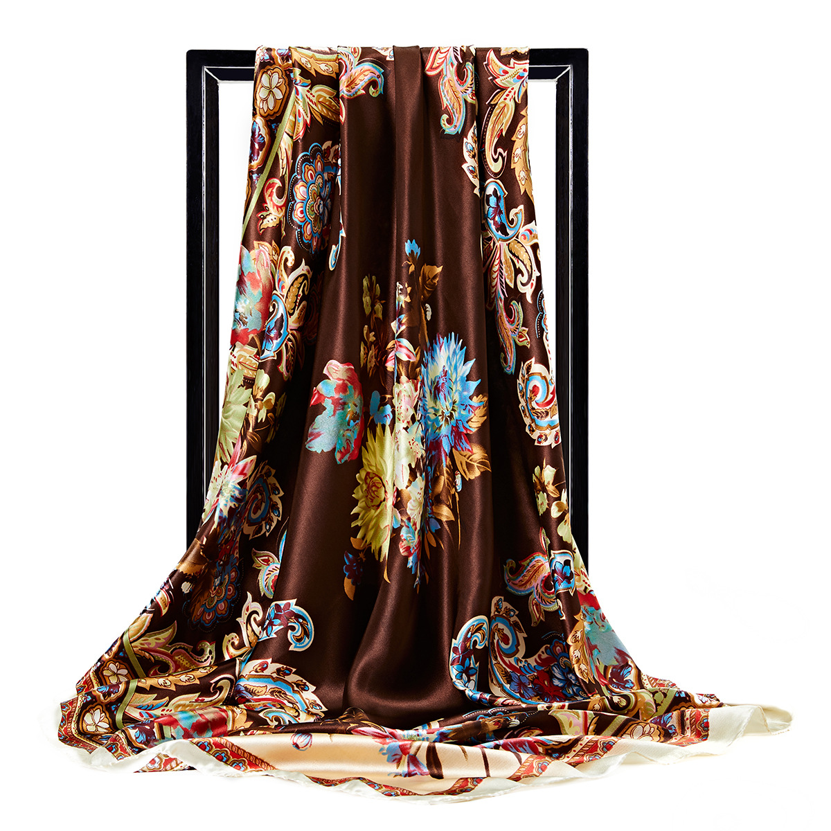 Gaohe 새로운 90CM 대형 스퀘어 스카프 민족 스타일 캐슈 패턴 프린트 스카프 빈티지 여성 스카프 실크 스카프