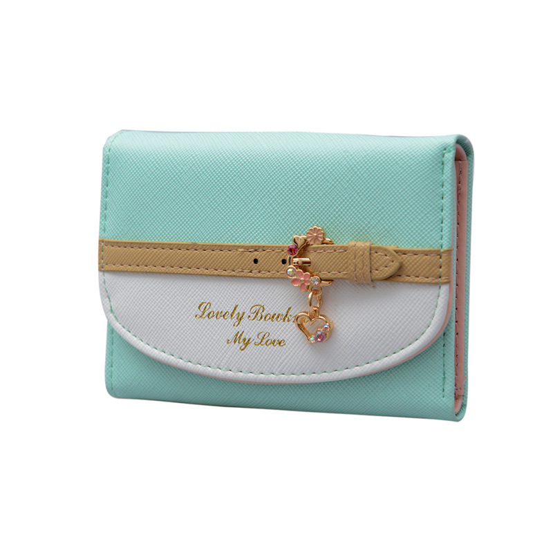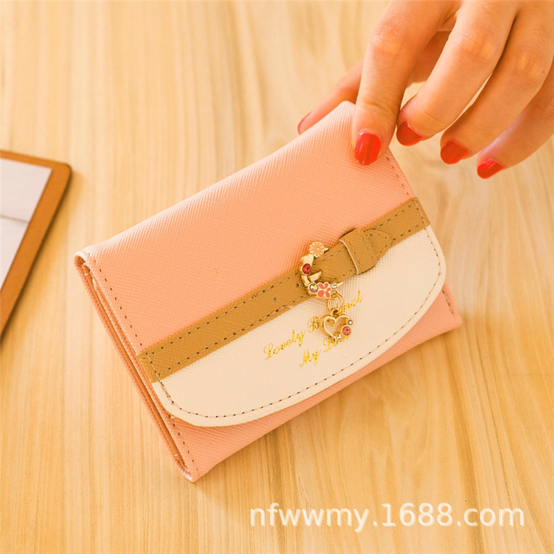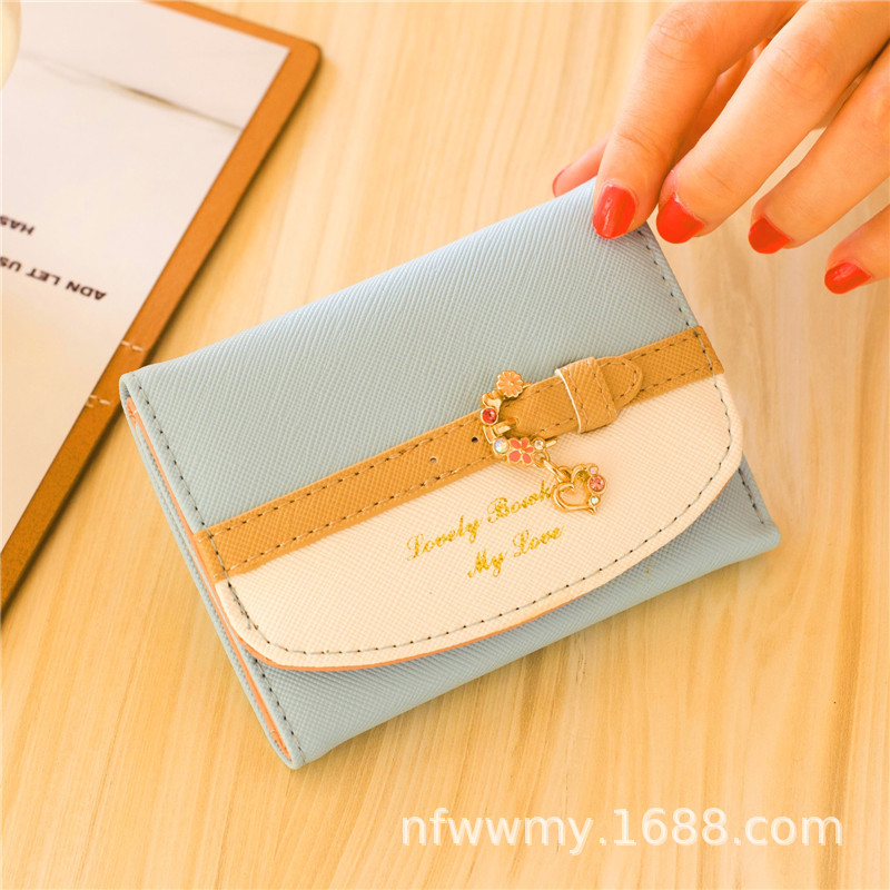 작은 신선한 한국 스타일 짧은 여성 지갑 버클 PU 가죽 단색 귀여운 작은 지갑 카드 홀더 클러치스토어 가기
