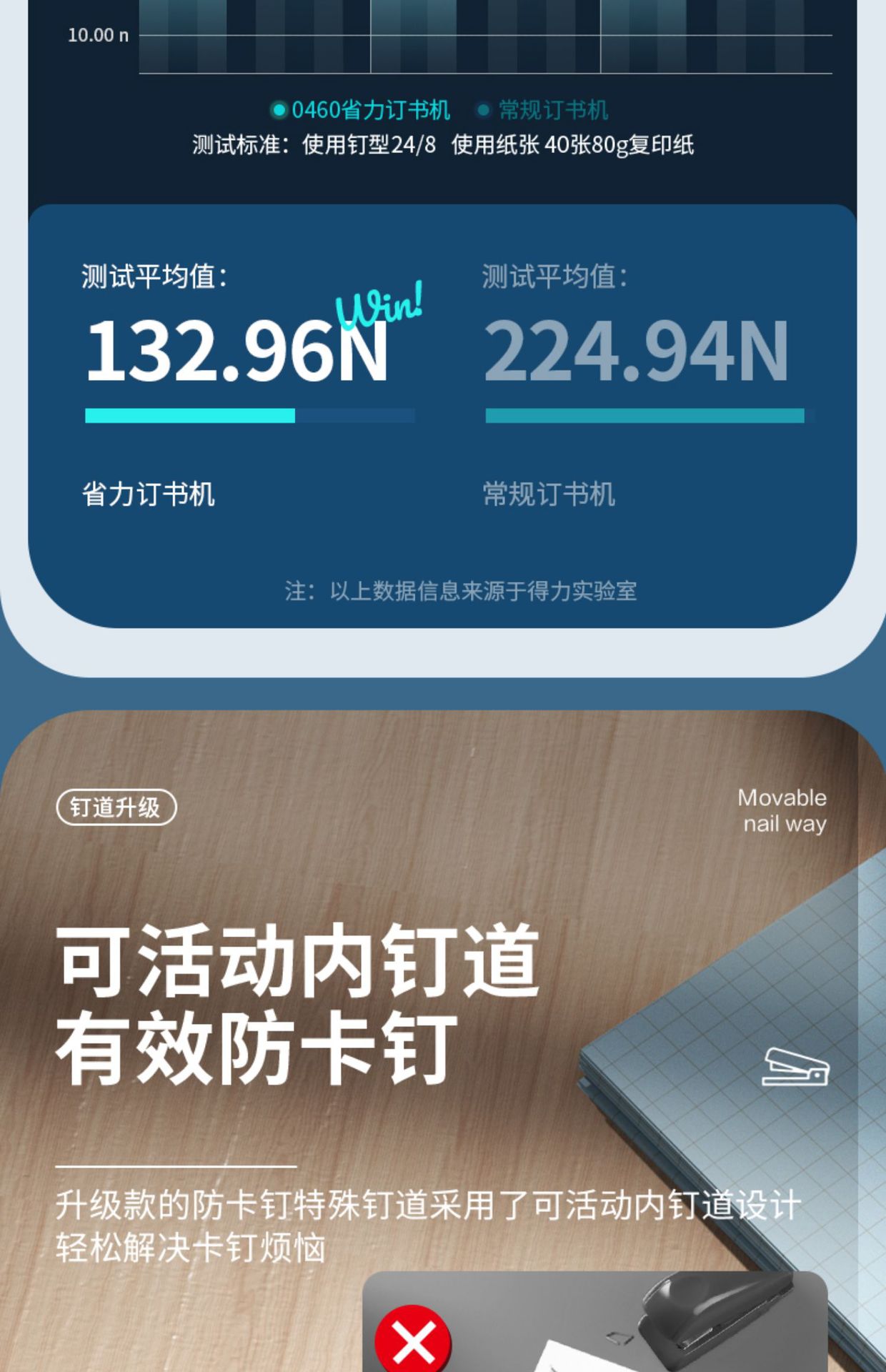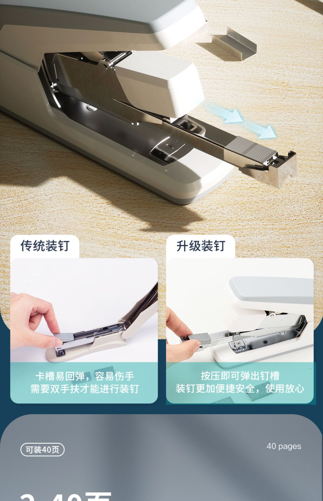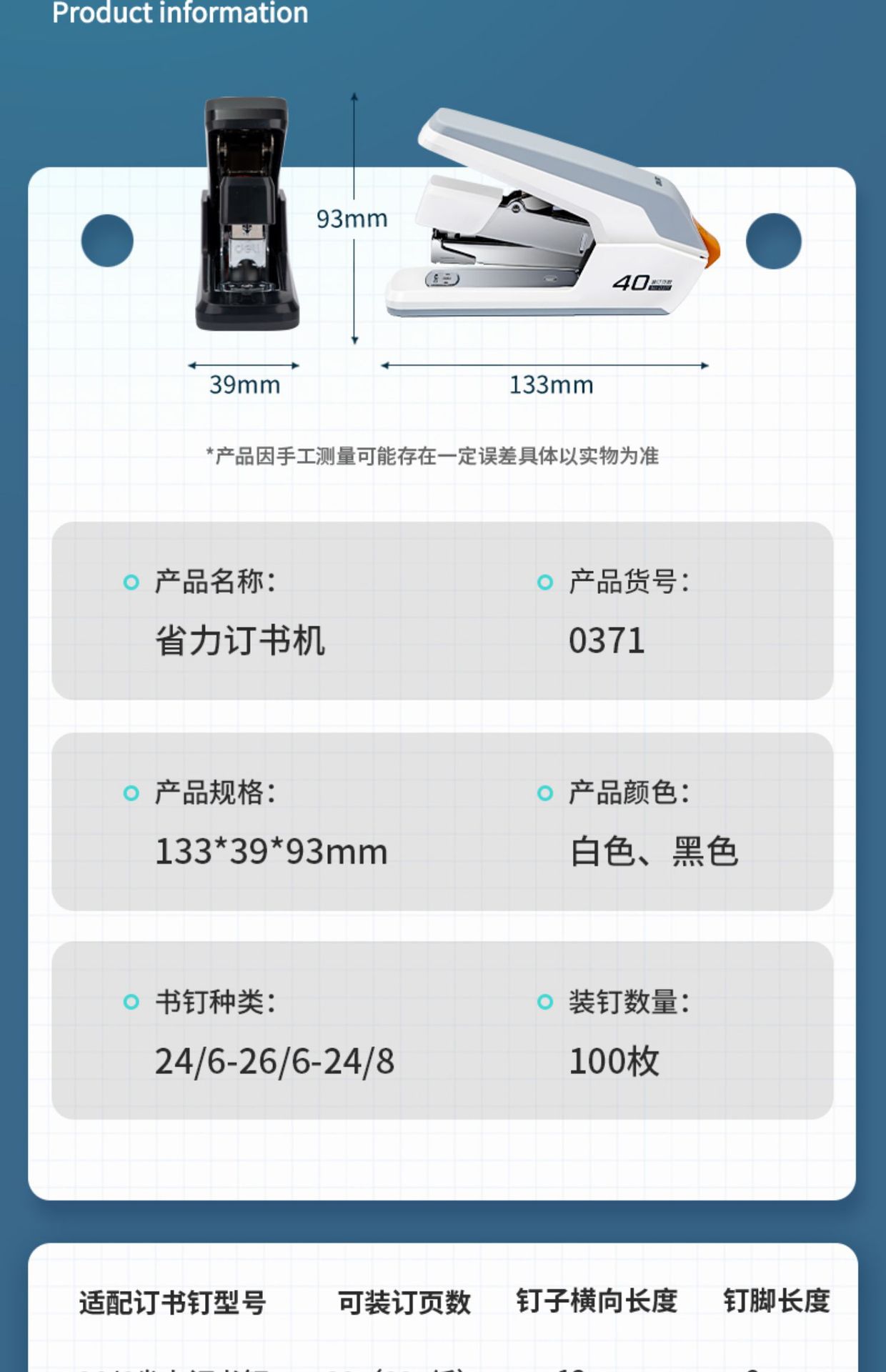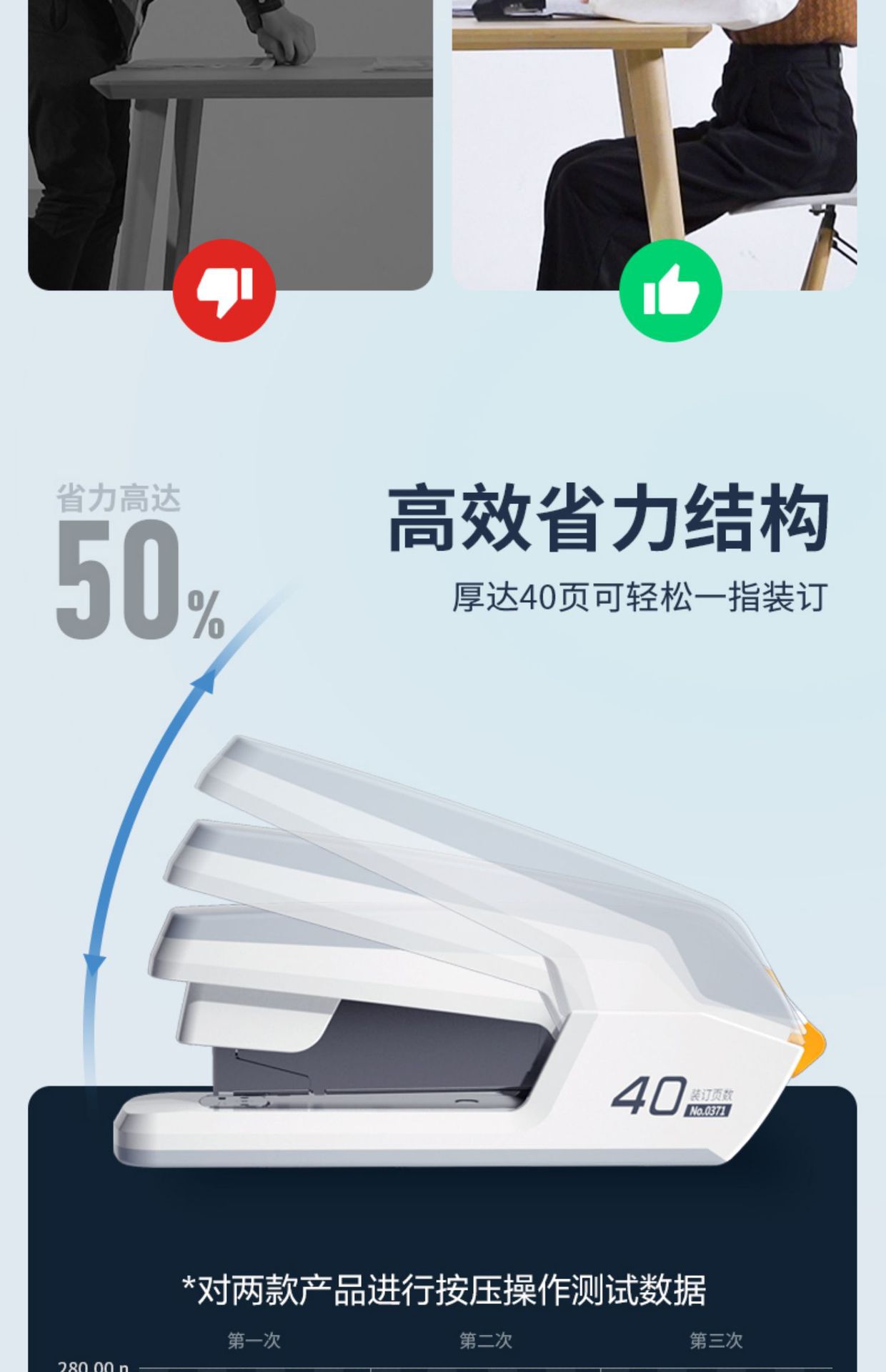 델리 0371 스테이플러 노동 절약 학생 스테이플러 두꺼운 40 페이지 중간 노동 절약 스테이플러