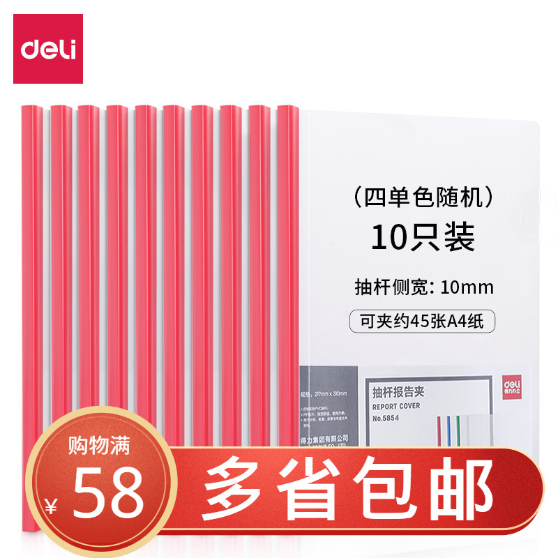 델리 5854 풀로드 폴더 A4 풀로드 클립 당기로드 클립 투명 풀로드 클립 폴더 10 팩