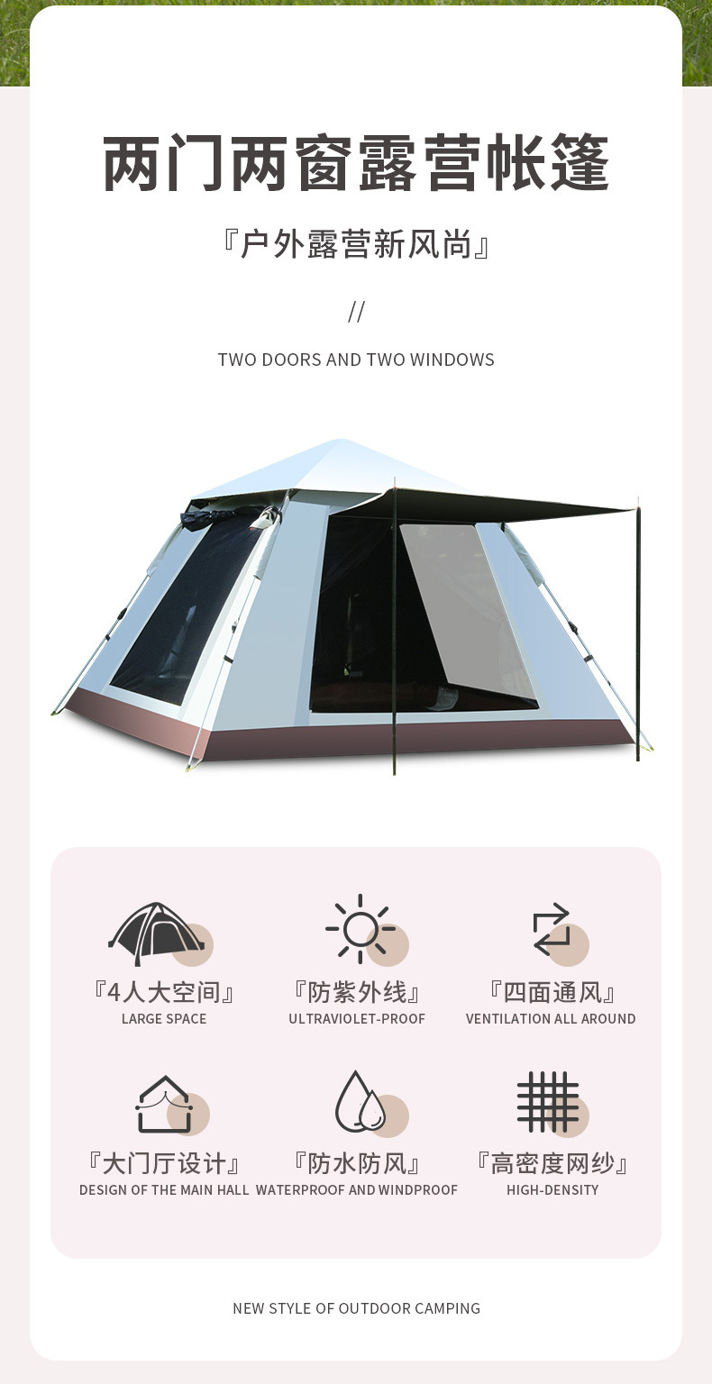 텐트 야외 자동 설치 34인용 해변 빠른 설치 접이식 캠핑 이중 방수 캠핑 텐트 공장 도매스토어 가기