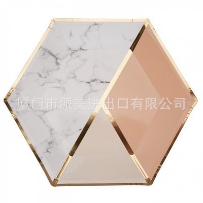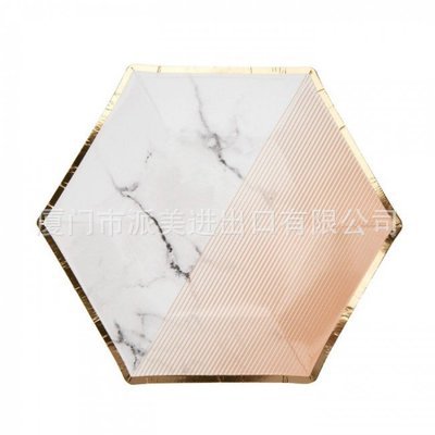 大理石粉色(8个8寸22cm六边形纸盘,8个9寸26cm六边形纸盘,8个270ml大理石纸杯丶16张纸巾烫金)