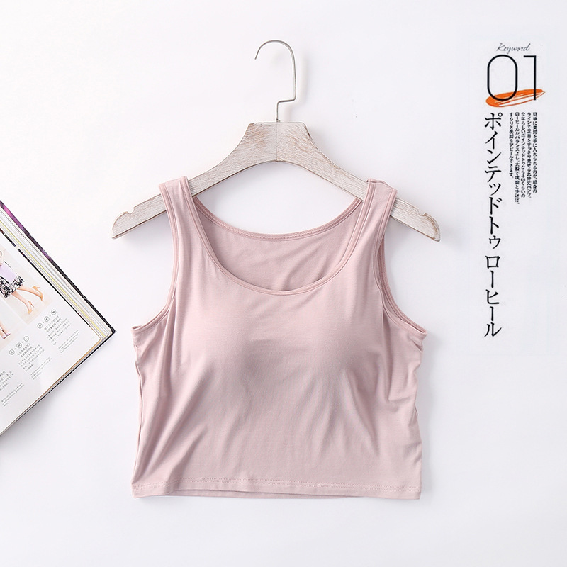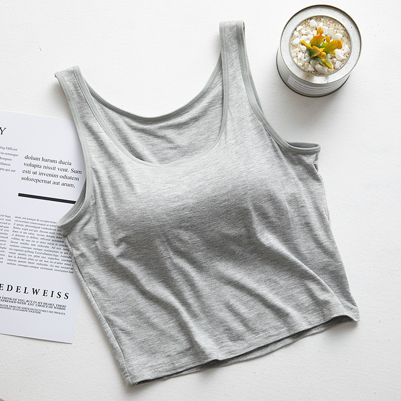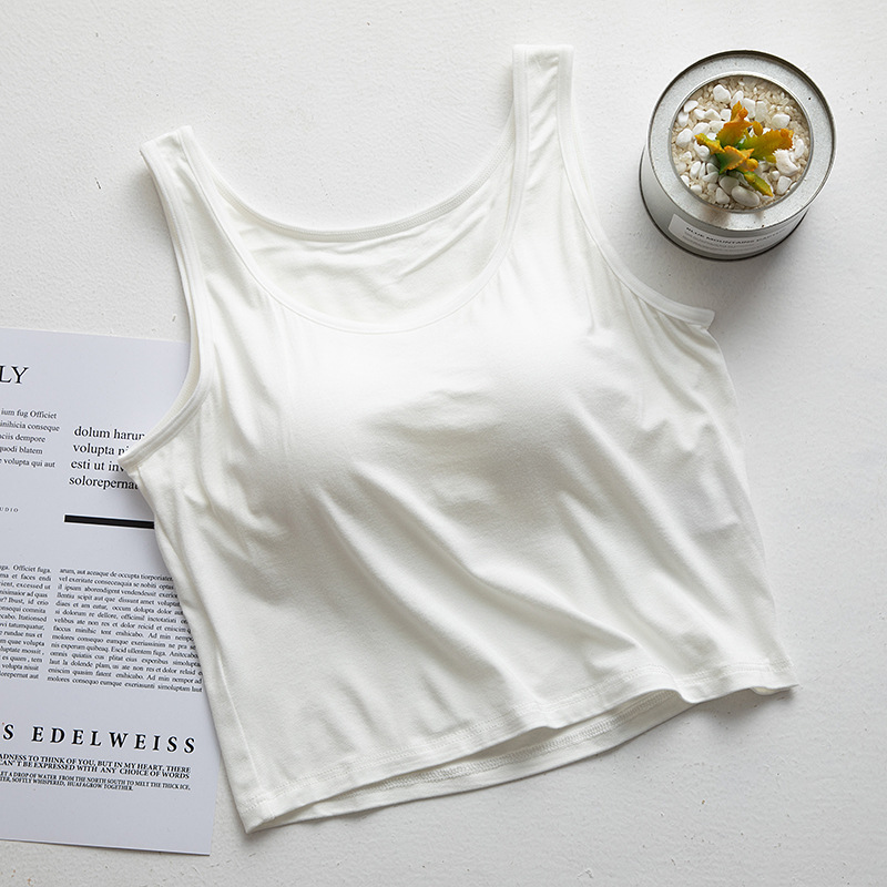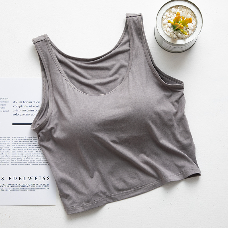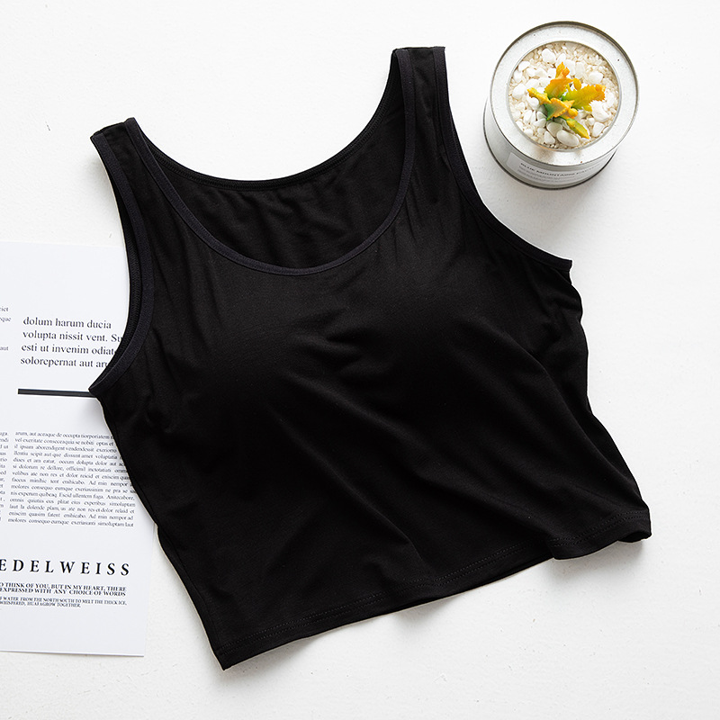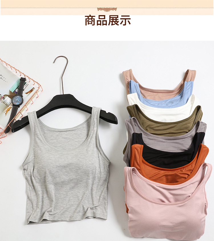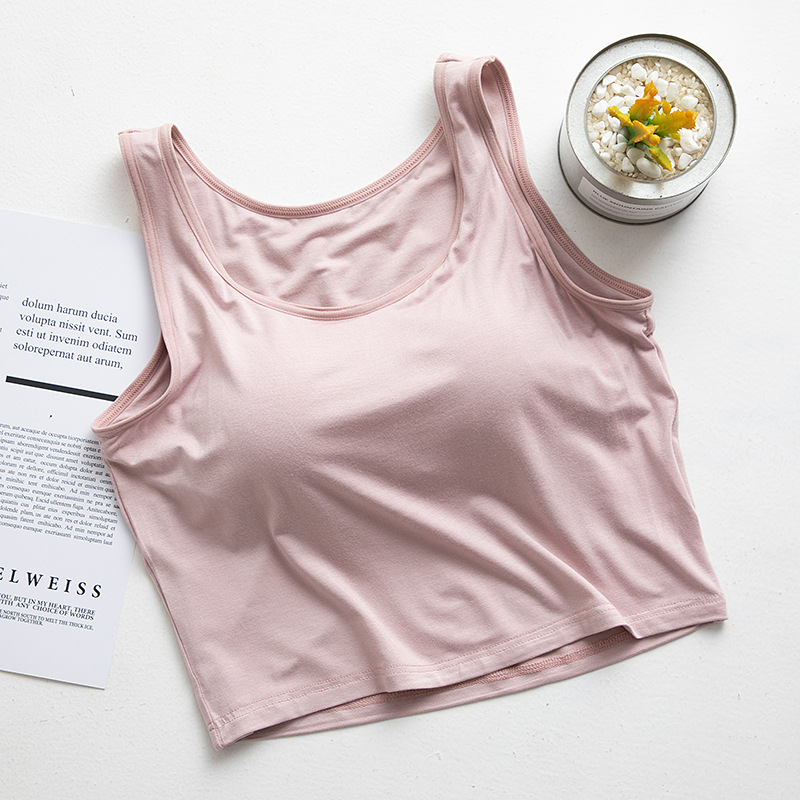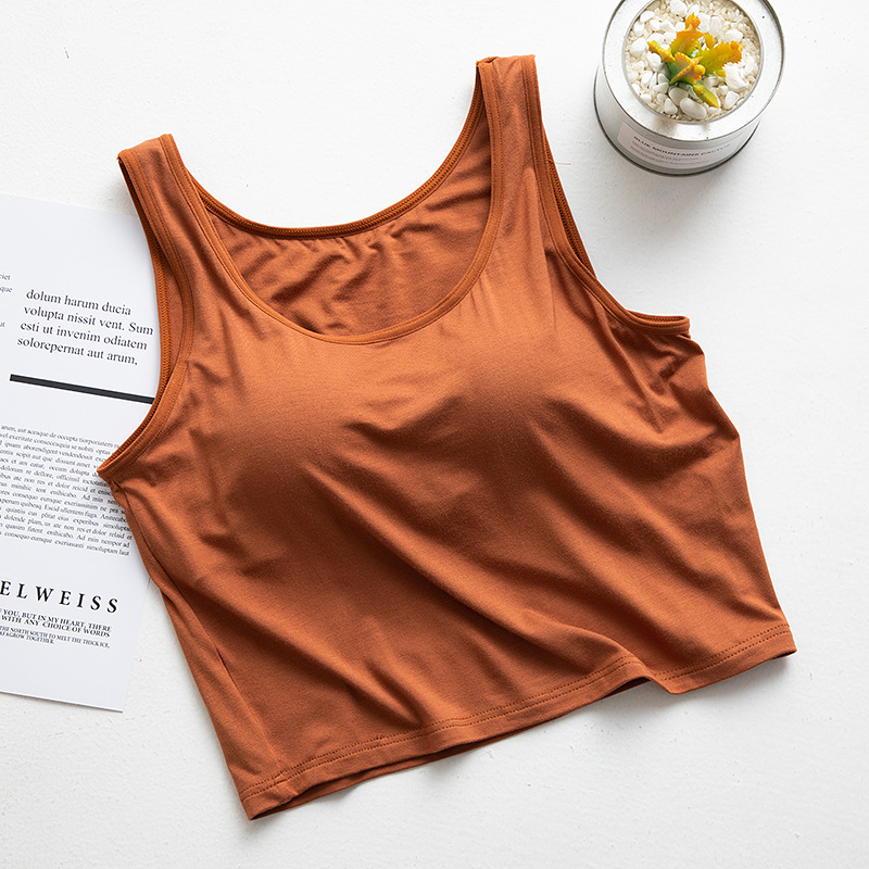 여성용 가슴 패드 컵 원피스 요가베이스 반절 노출 허리와 배꼽 짧은 캐미솔 모달