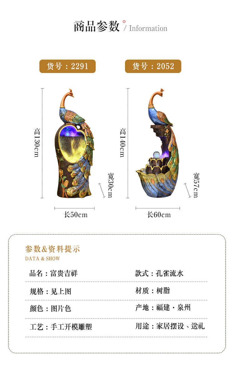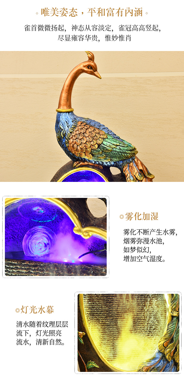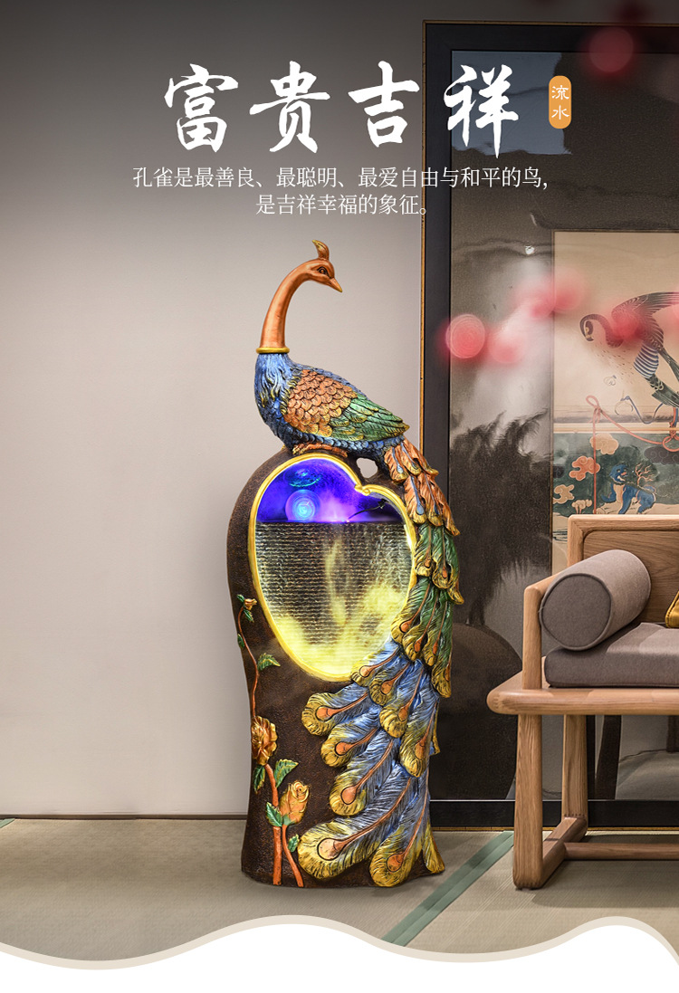 중국 공작 분수 장식 실내 거실 사무실 바닥 장식 가정 가구 오프닝 선물