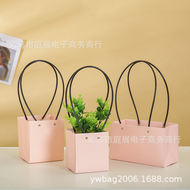 새로운 어머니의 날 꽃 토트 백 발렌타인 데이 화분에 심은 꽃 선물 가방 필름 덮여 방수 핑크 사각형 사다리꼴
