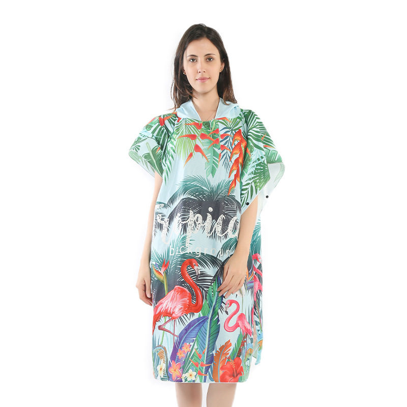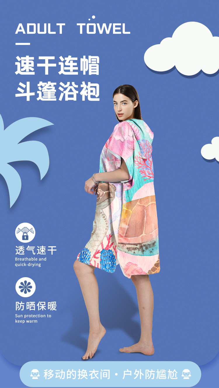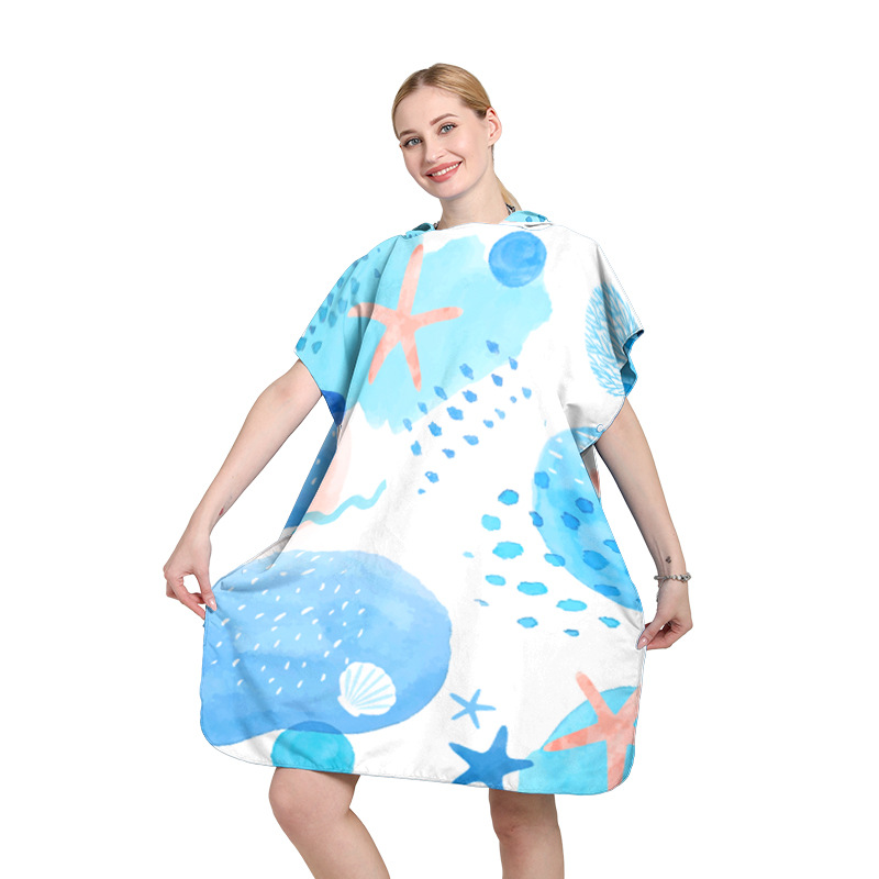성인용 속건 망토형 비치 타월, 흡수성 좋은 양면 플리스 프린트 수영/다이빙/탈의용 목욕가운