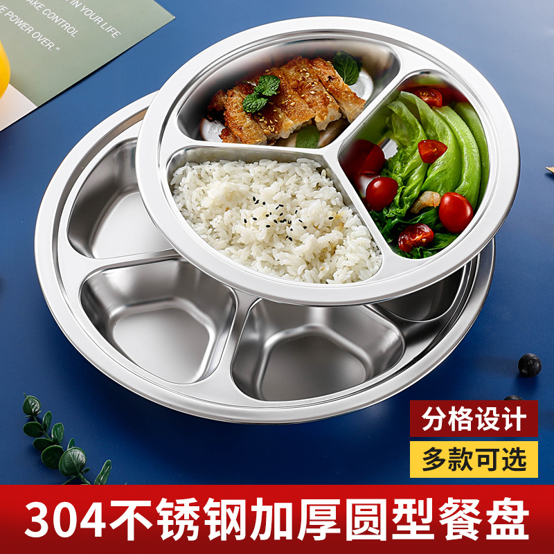 어린이 플레이트 유치원 스테인레스 스틸 라운드 플레이트 304 스테인레스 스틸 패스트 푸드 플레이트 초등학교 매점 구획 플레이트스토어 가기