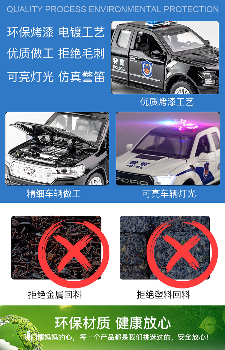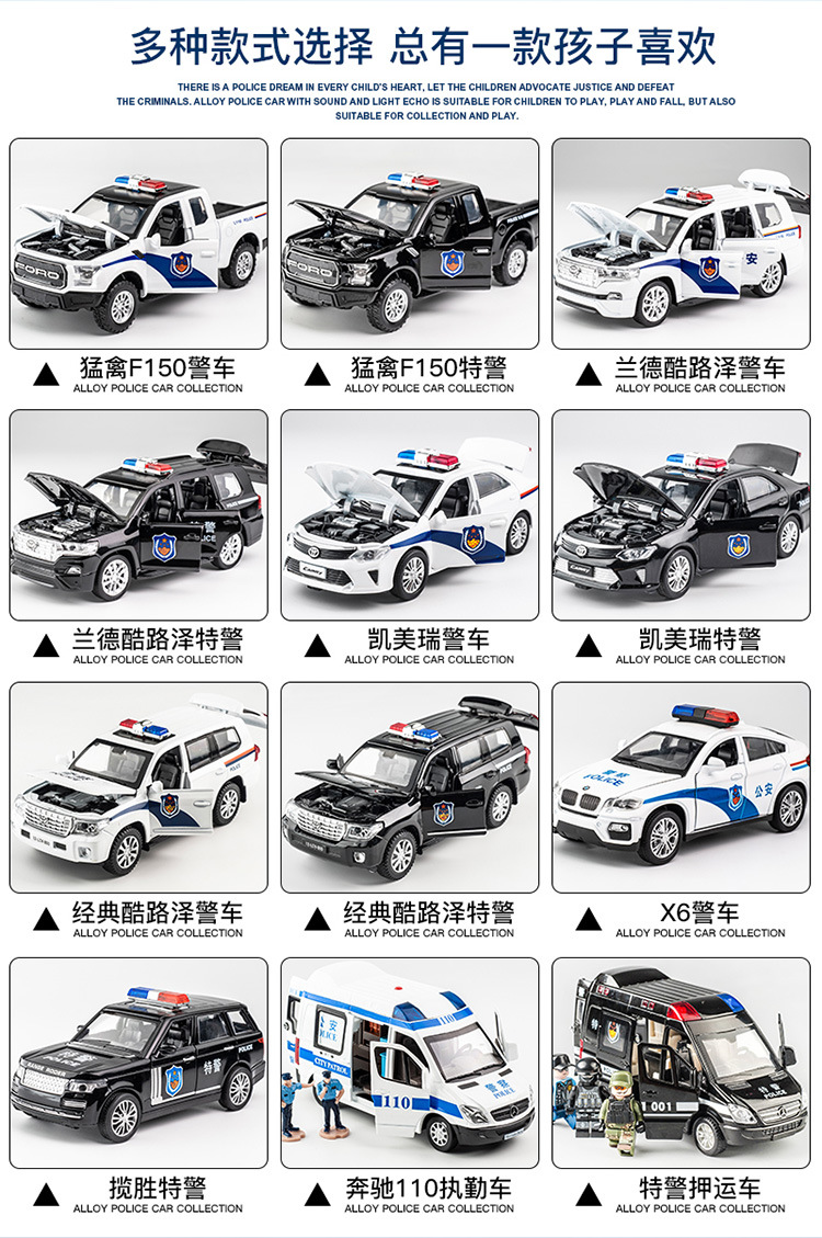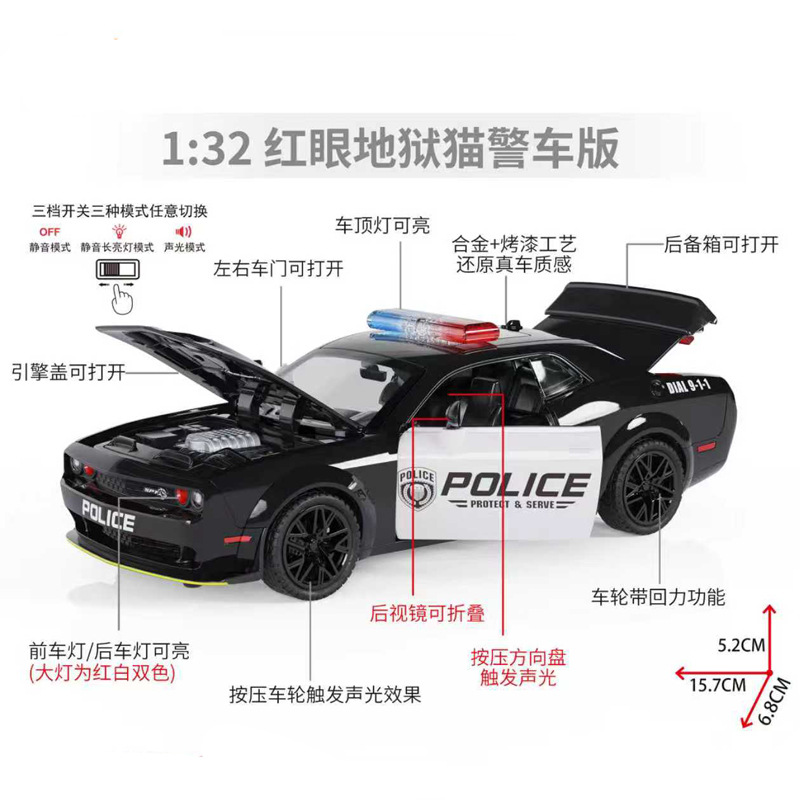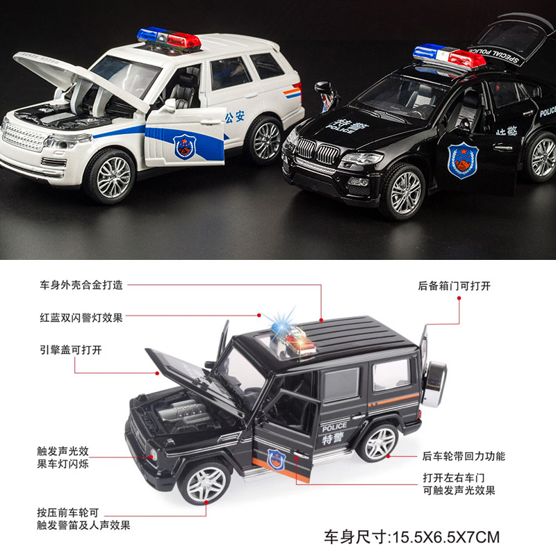 대형 합금 경찰차 어린이 소리와 빛 장난감 자동차 문 열림 가능 자동차 모델 장식 소년 선물 도매스토어 가기