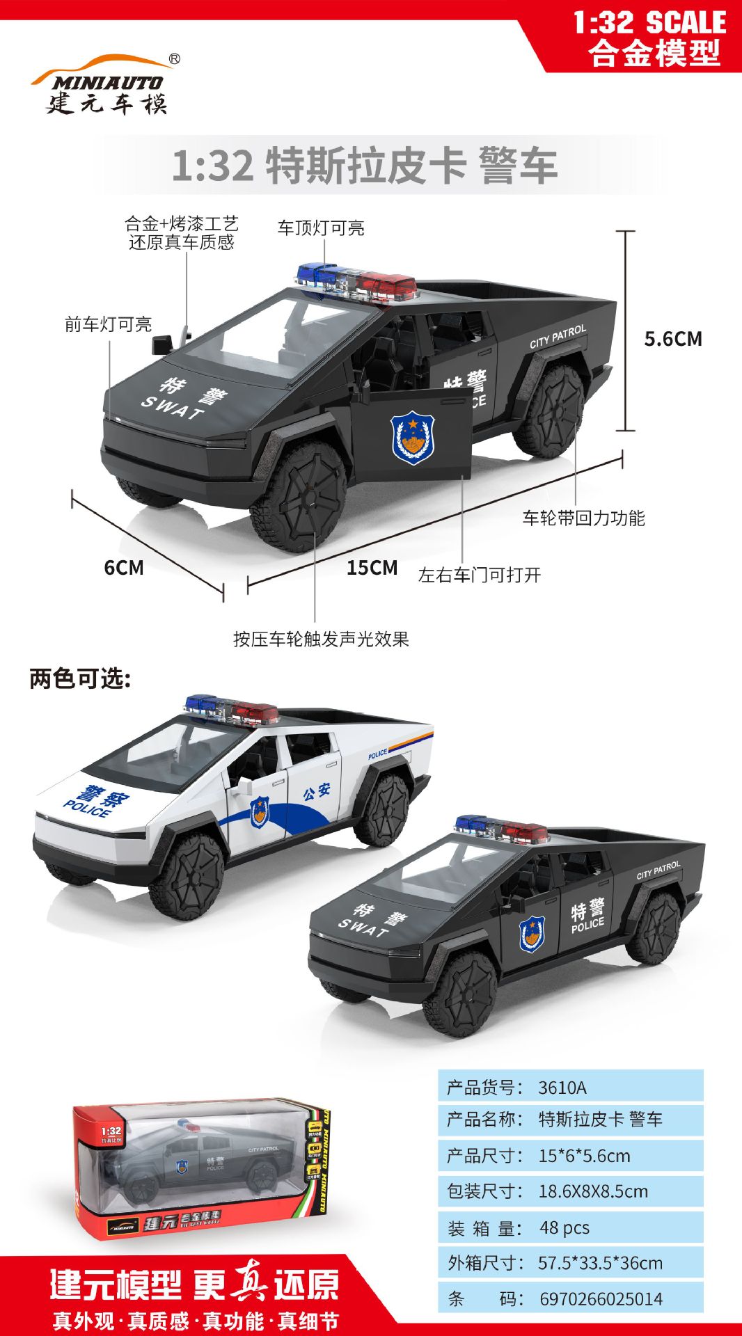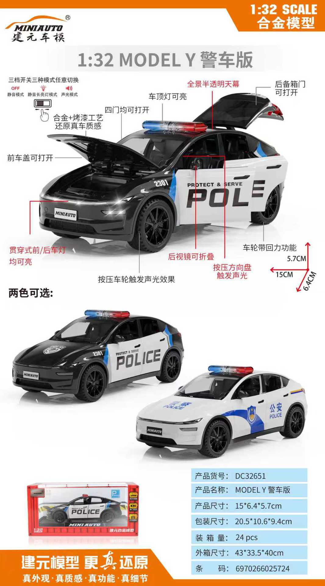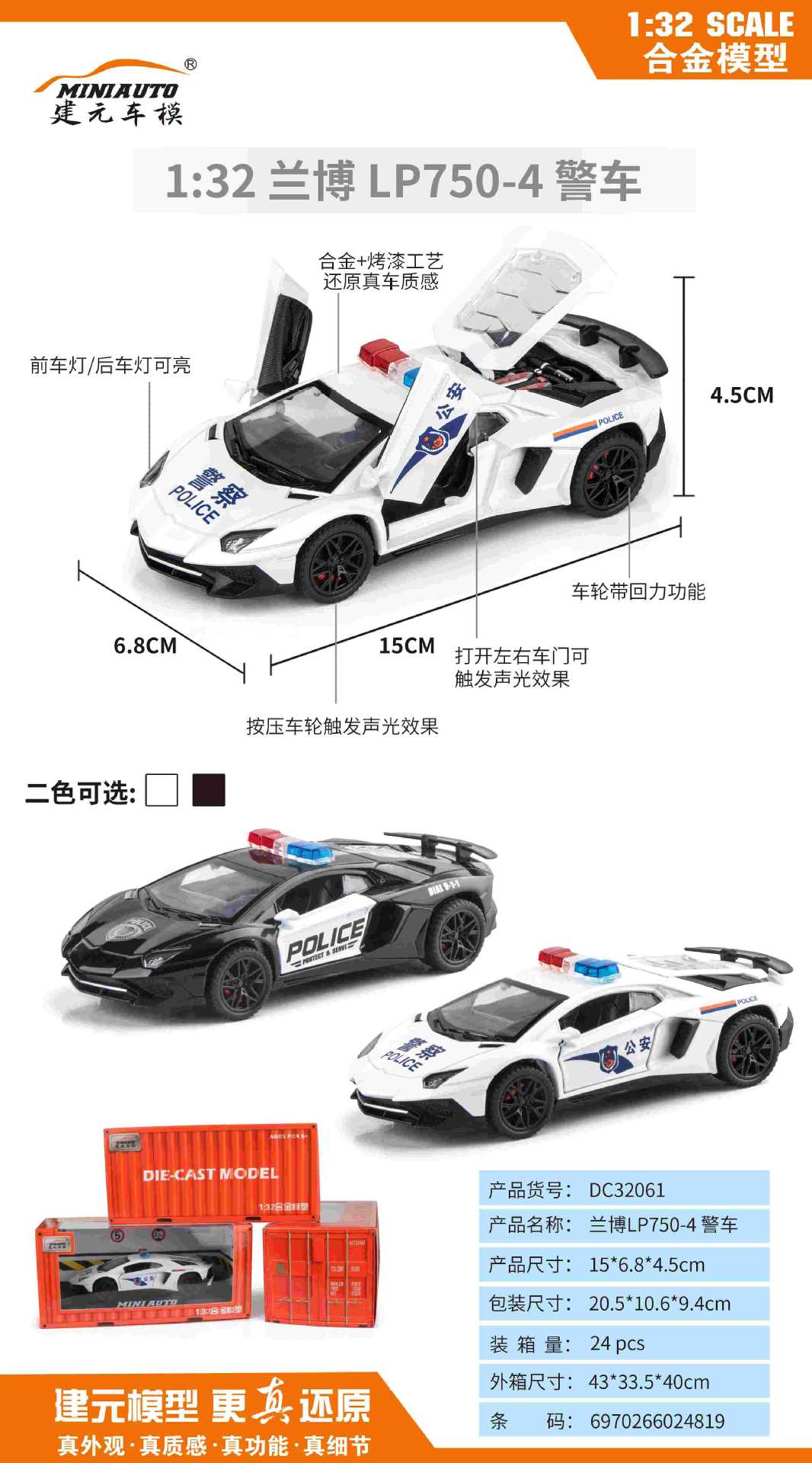 仿真1:32/24警车合金车模