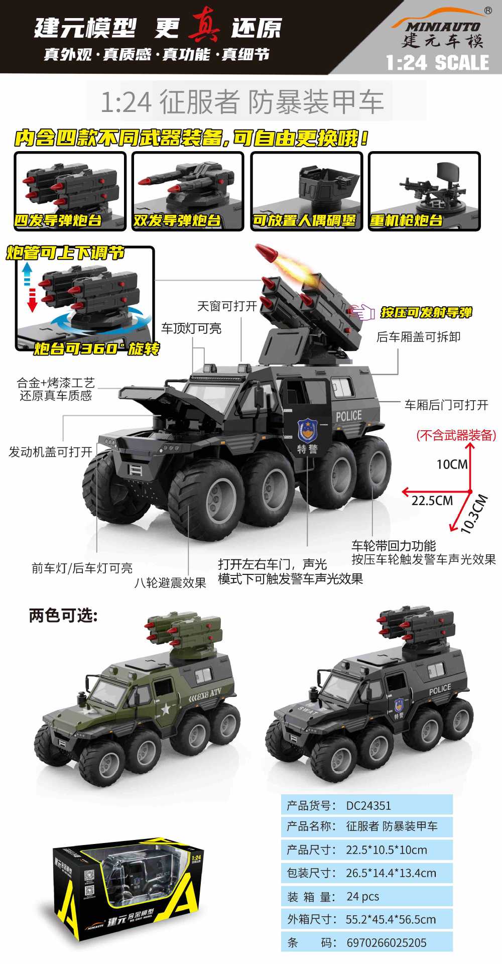 • 대형 샤먼 경찰차 장갑차 검정색 교체형 타워