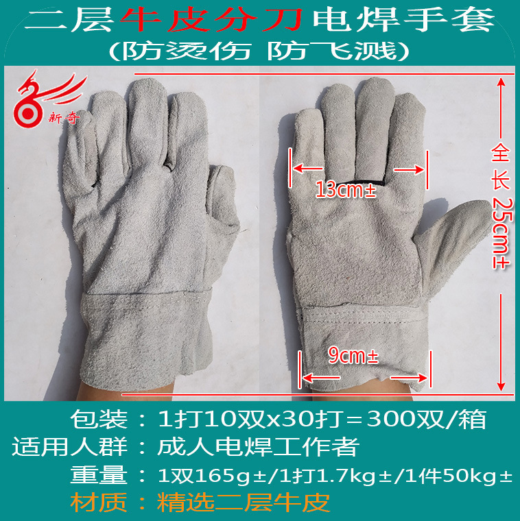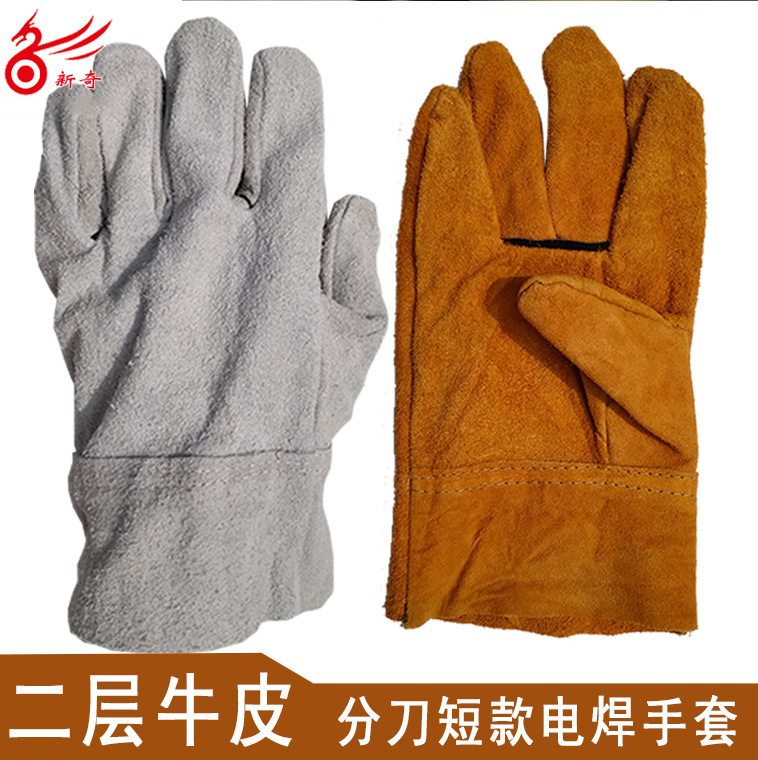 【商品名称】:短款电焊手套/二层牛皮全皮电焊手套