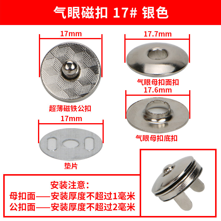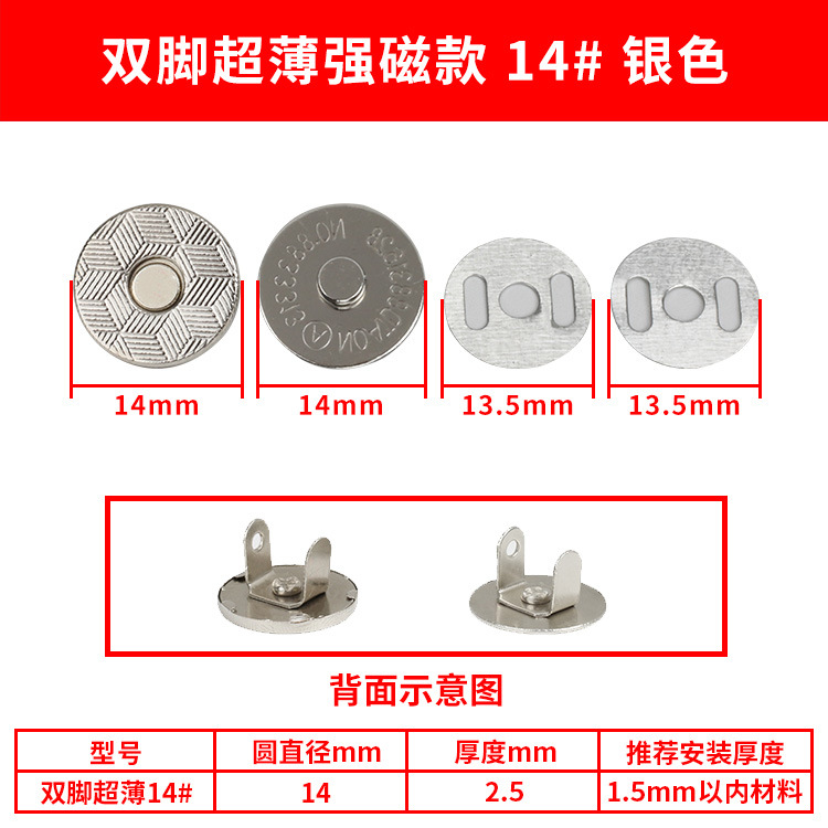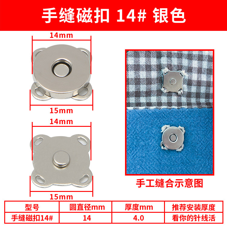• 실버 * 14mm * 손으로 꿰매는 마그네틱 버클