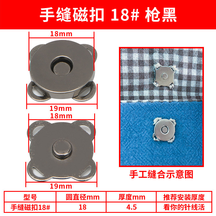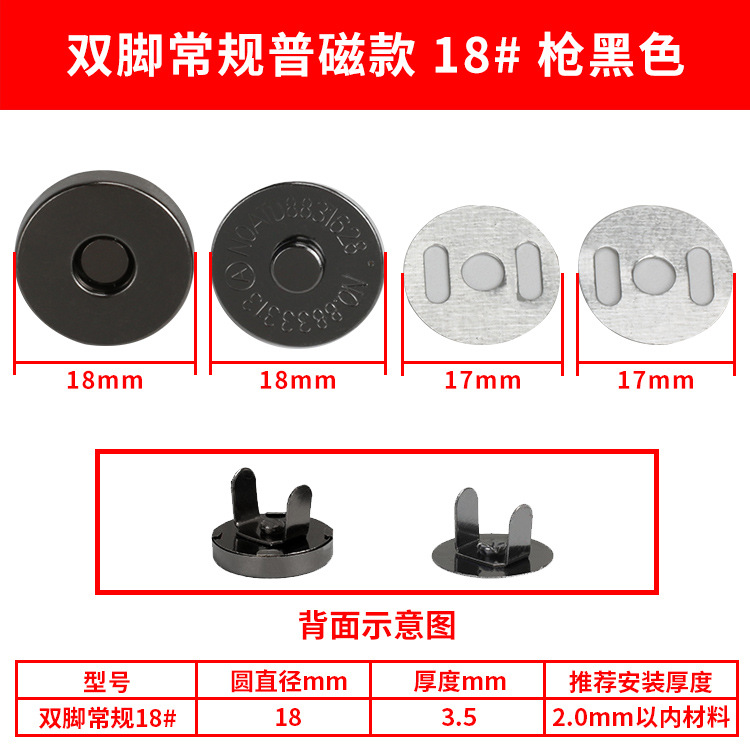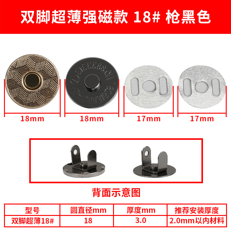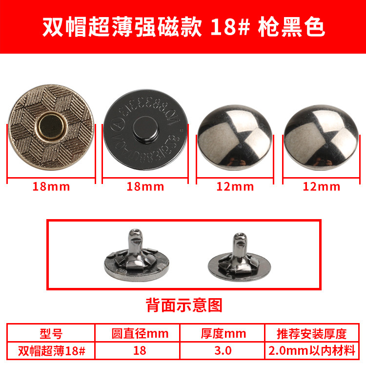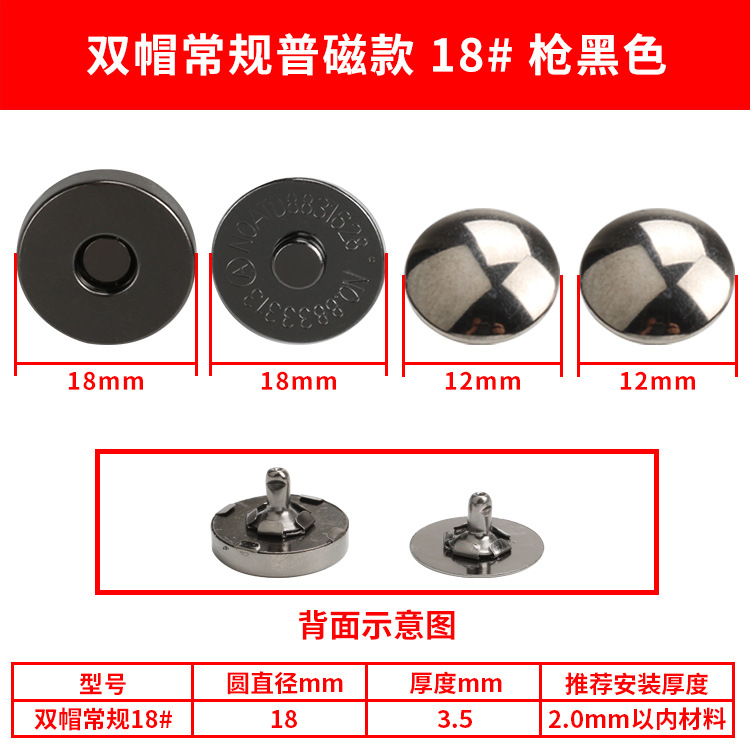 • 건 블랙 * 18mm * 더블 모자 패딩 일반 마그네틱