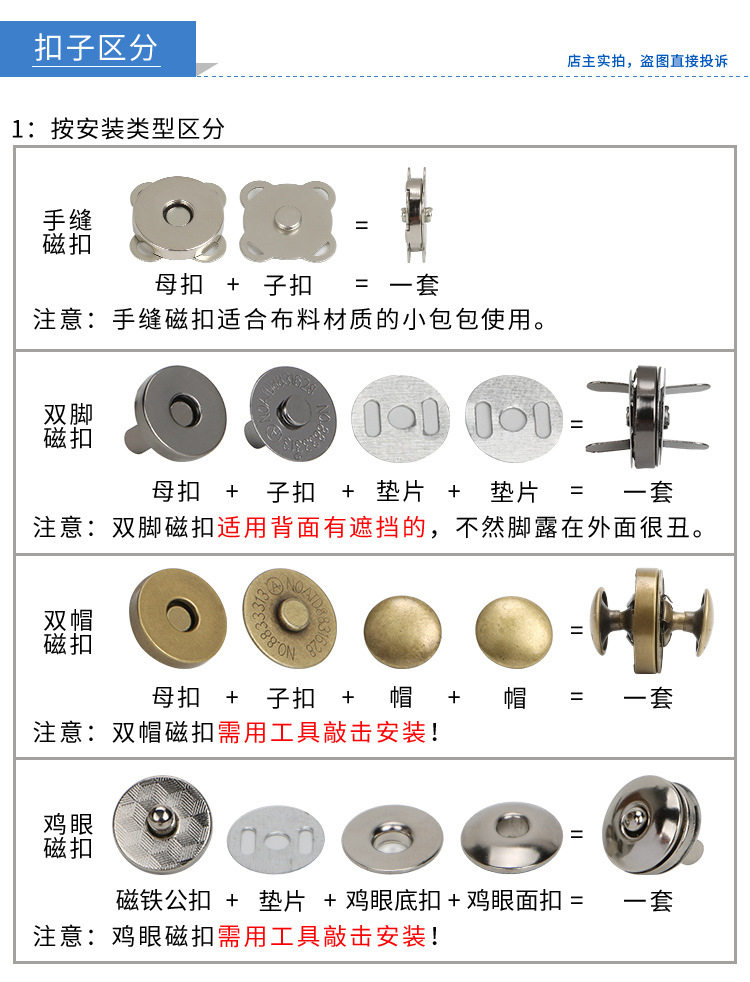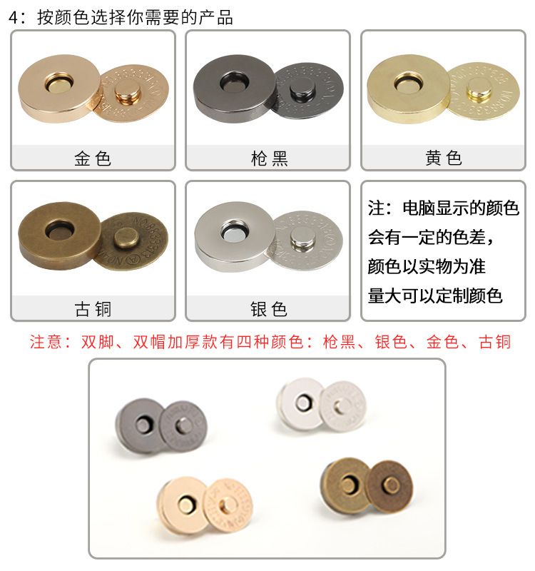 공장 도매 무봉제 가방, 양쪽 다리, 이중 캡, 자석 버클, 손으로 꿰매는 자석 버클, 버튼, 자석 버클, 가방 스냅스토어 가기