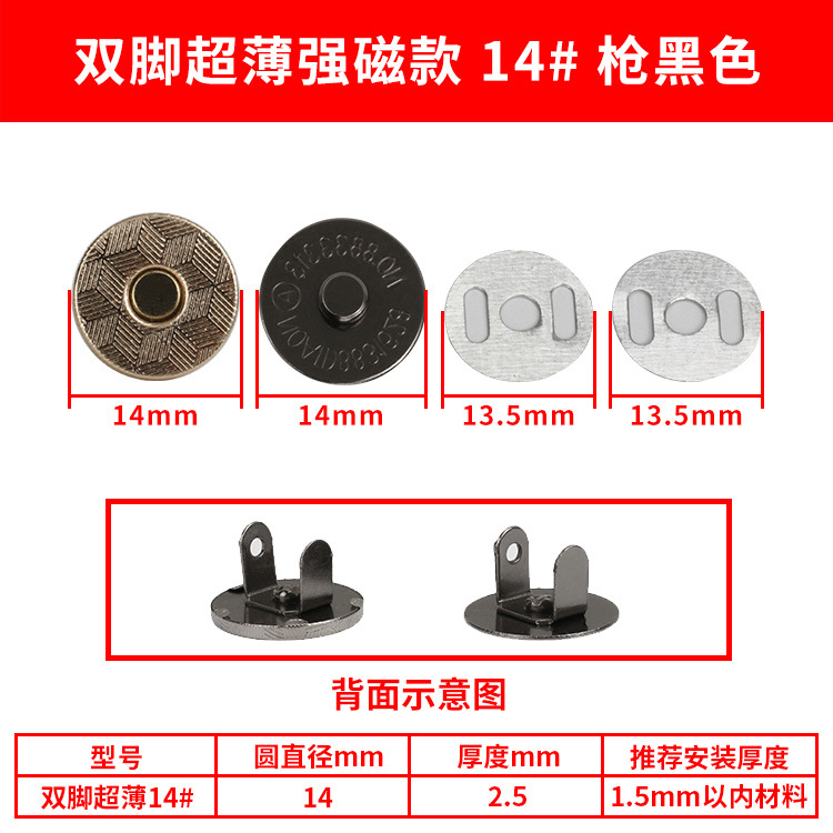 • 건 블랙 * 14mm * 더블 햇 초박형 강력 마그네틱