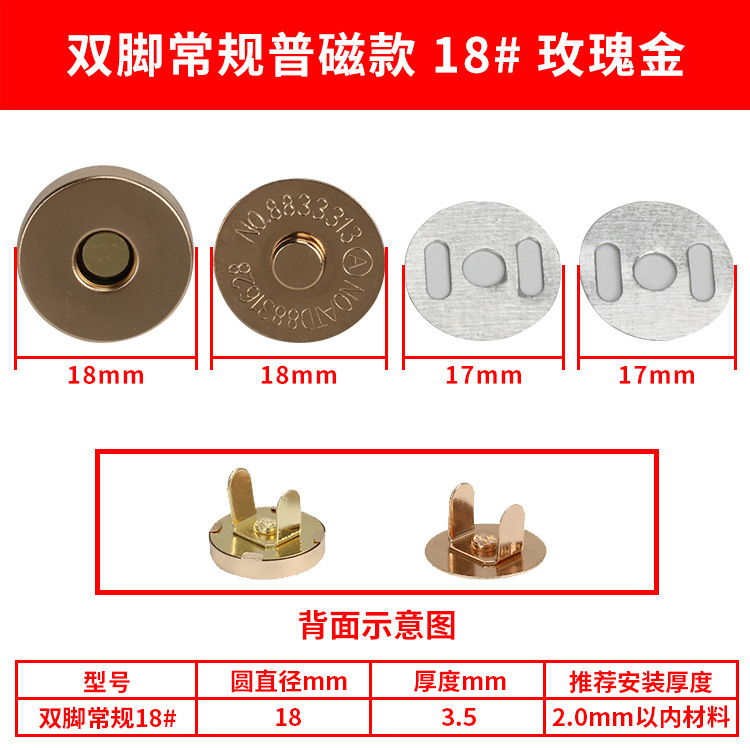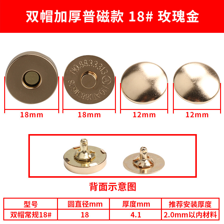 • 로즈 골드 * 18mm * 더블 모자 패딩 일반 마그네틱
