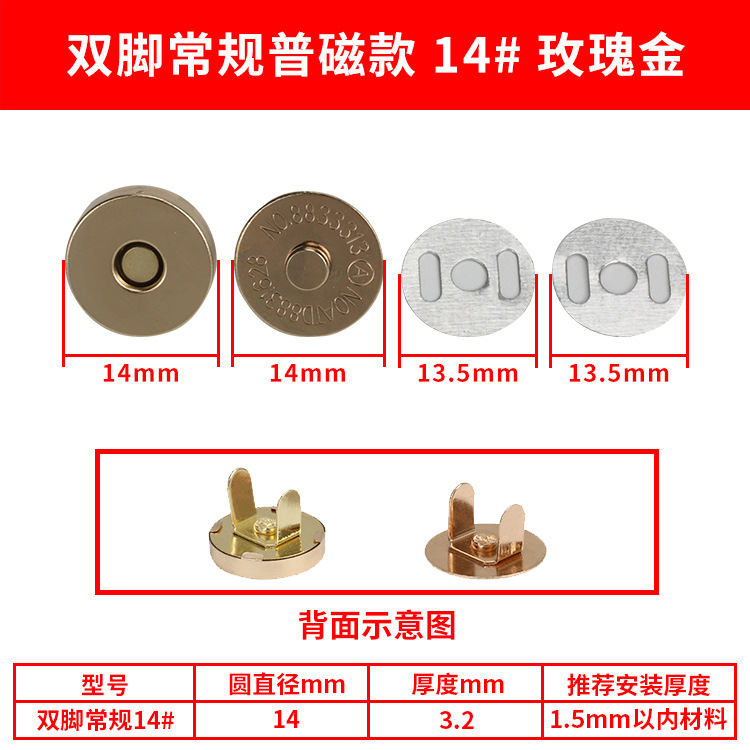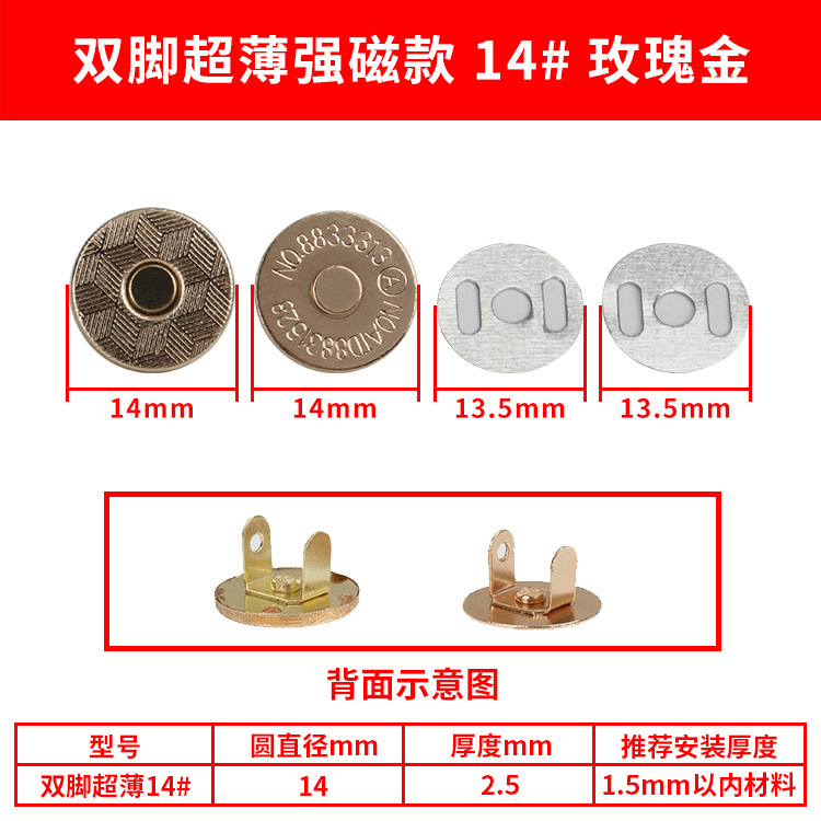 • 로즈 골드 * 14mm * 피트 초박형 강한 자석