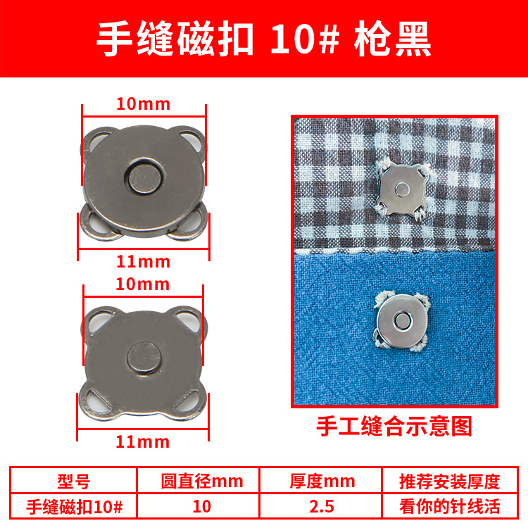 • 건 블랙 * 10mm * 손으로 수 놓은 마그네틱 버클