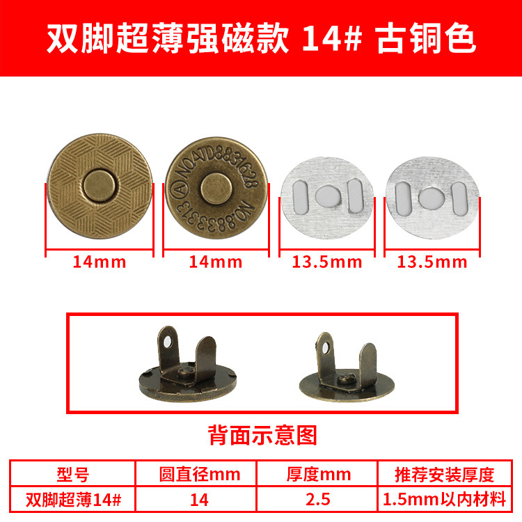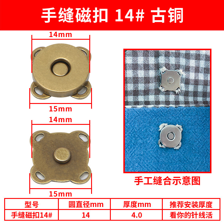 • 청동 * 14mm * 손으로 꿰매는 마그네틱 버클