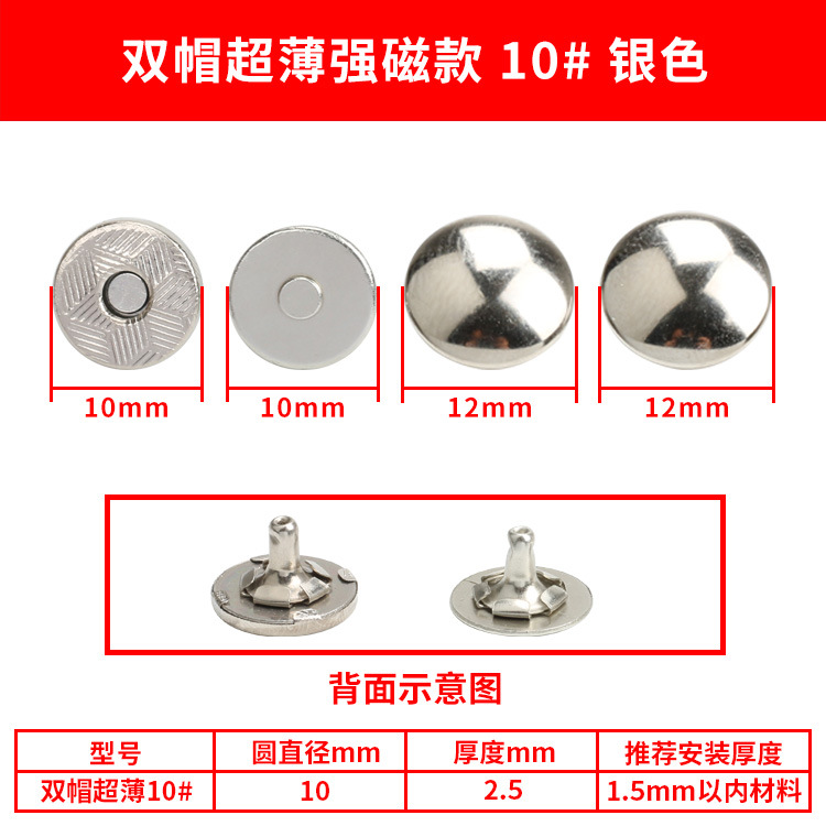 • 실버 * 14mm * 더블 모자 정사이즈 일반 자기 단면