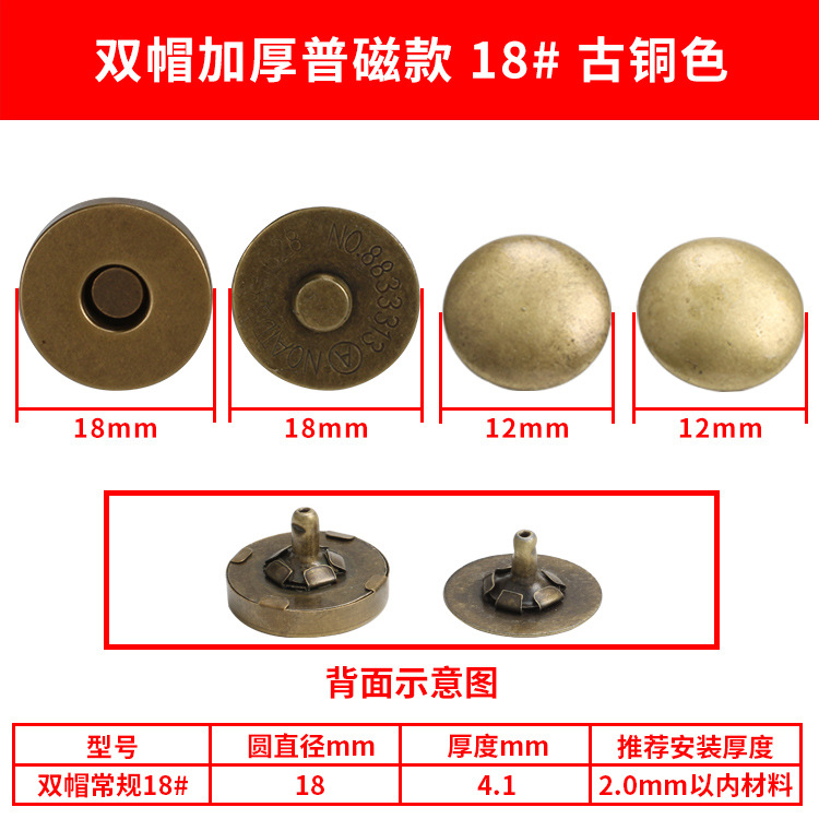 • 청동 * 18mm * 더블 캡 패딩 일반 자석