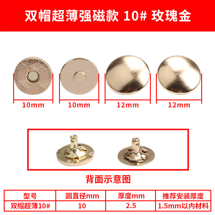 • 로즈 골드 * 10mm * 더블 햇 초박형 강력 마그네틱