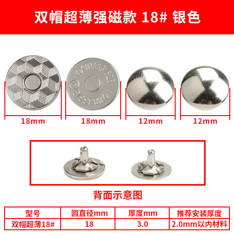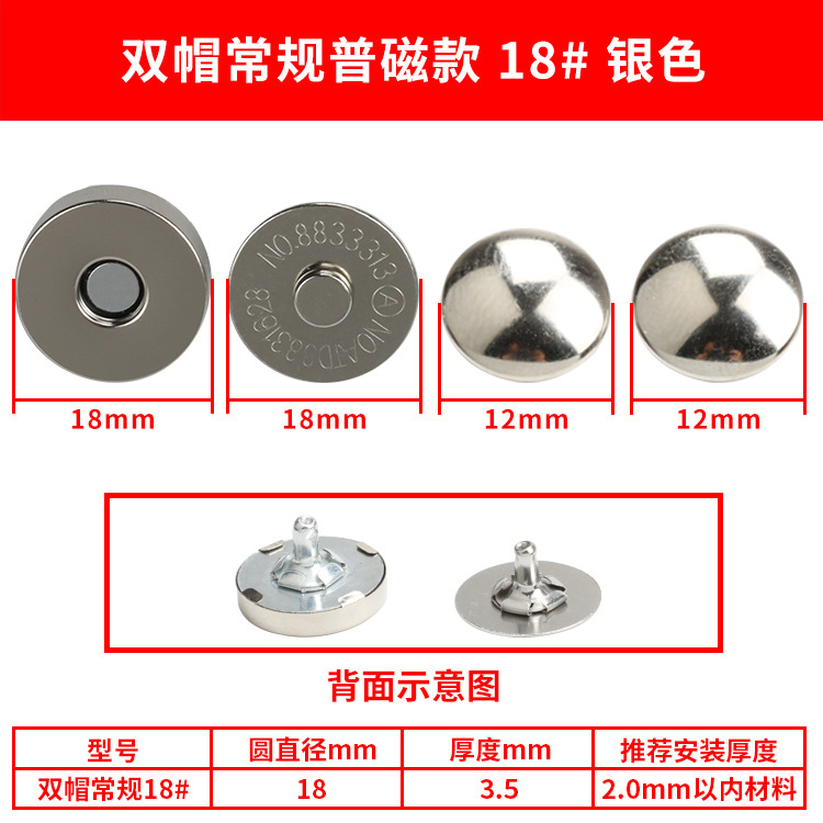 • 실버 * 18mm * 더블 모자 정사이즈 일반 자기 단면