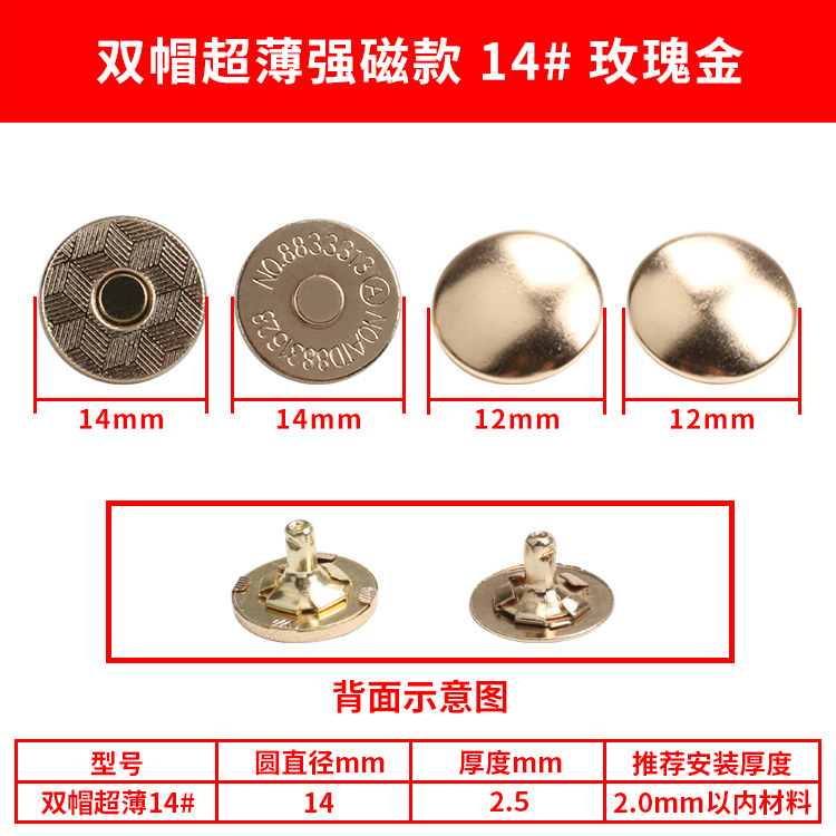 • 로즈 골드 * 14mm * 더블 햇 초박형 강력 마그네틱