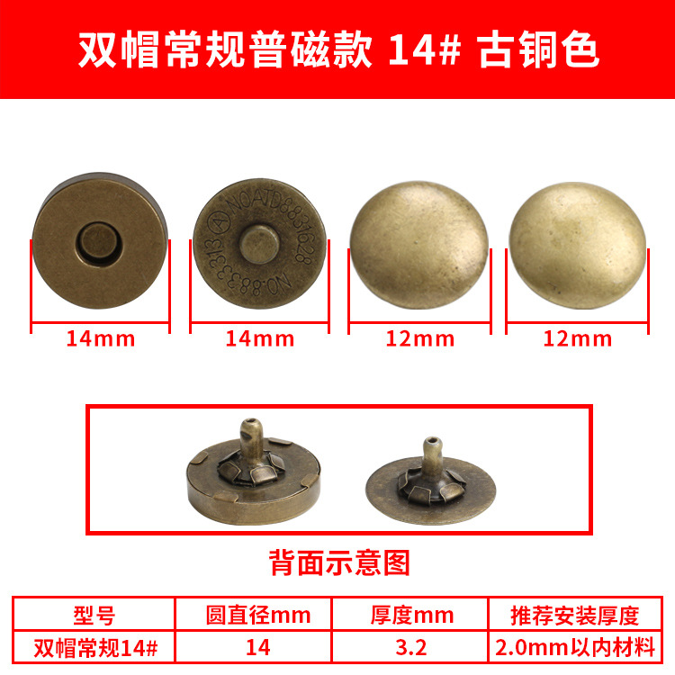 • 일반 자석을 정사이즈 청동 * 14mm * 더블 모자