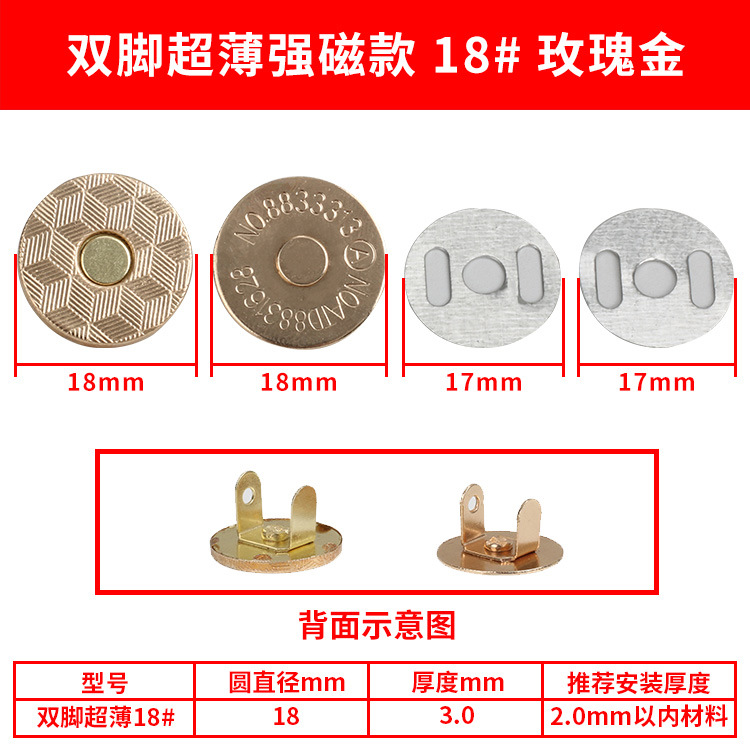 • 로즈 골드 * 18mm * 피트 초박형 강한 자석