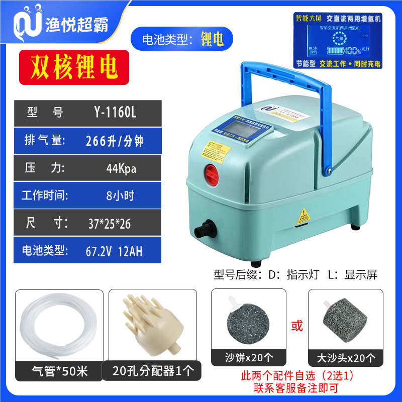 Yuyue AC/DC 이중 목적 충전 어류 양식 펌프 산소 펌프 산소 펌프 산소 펌프 리튬 배터리 통기 펌프스토어 가기