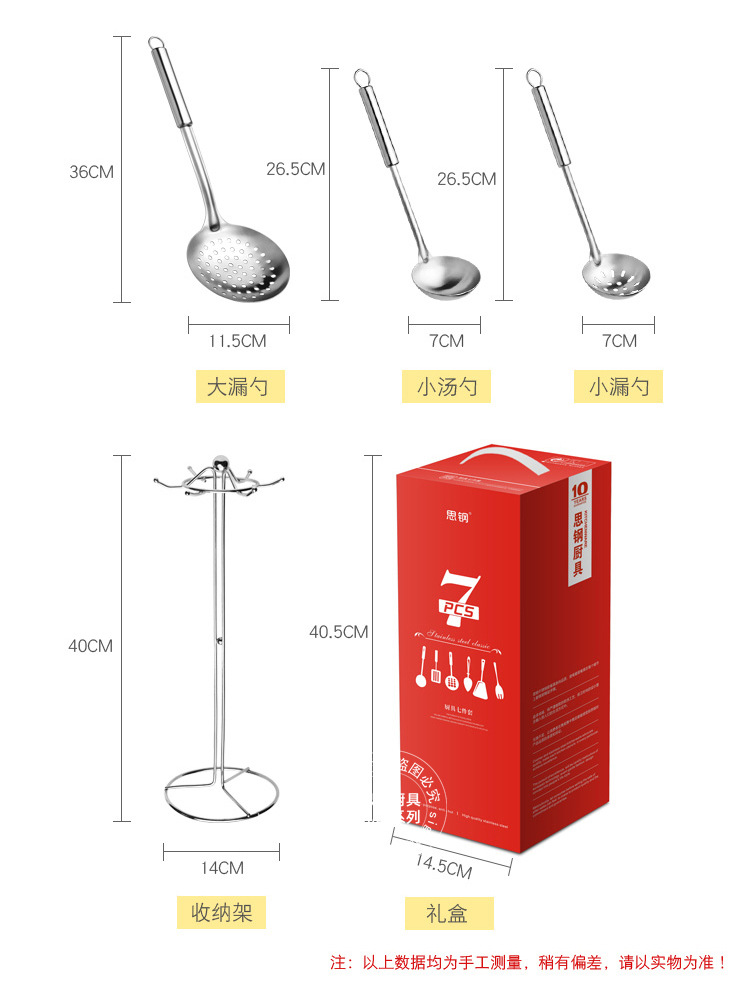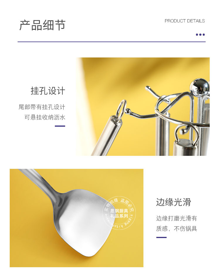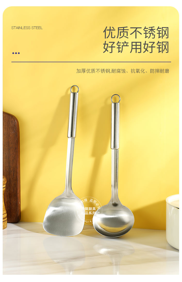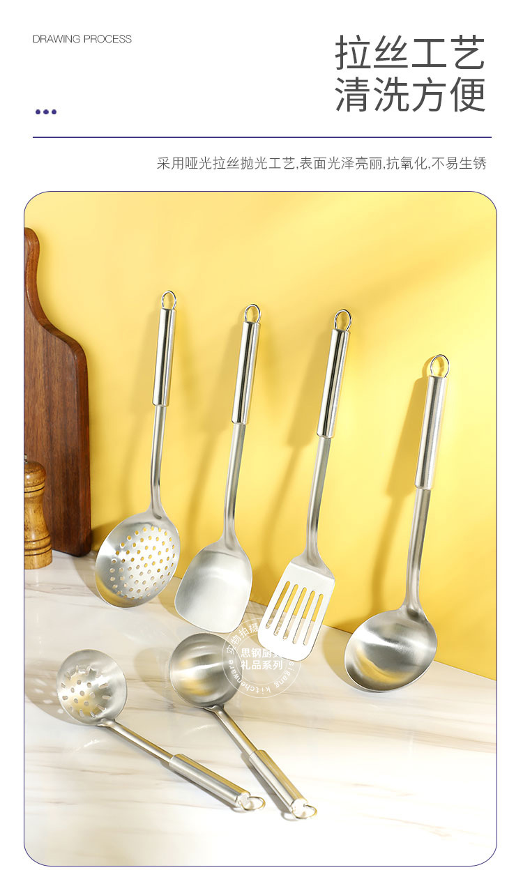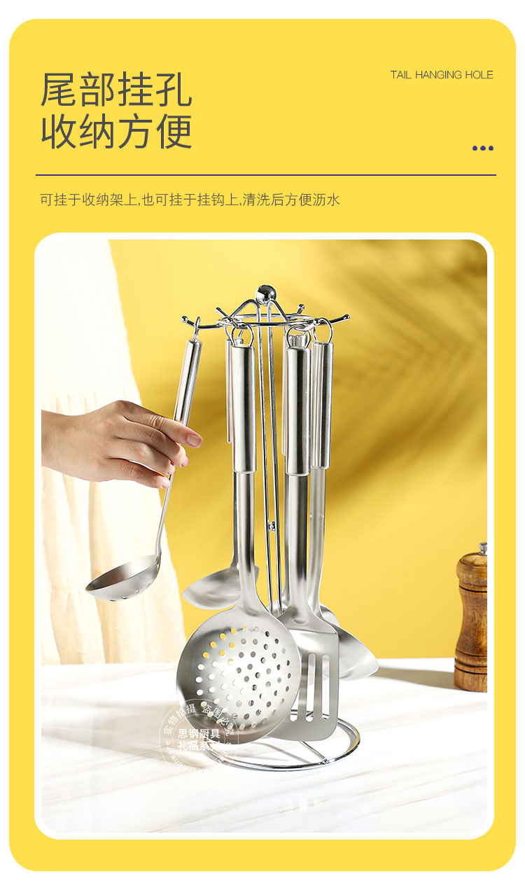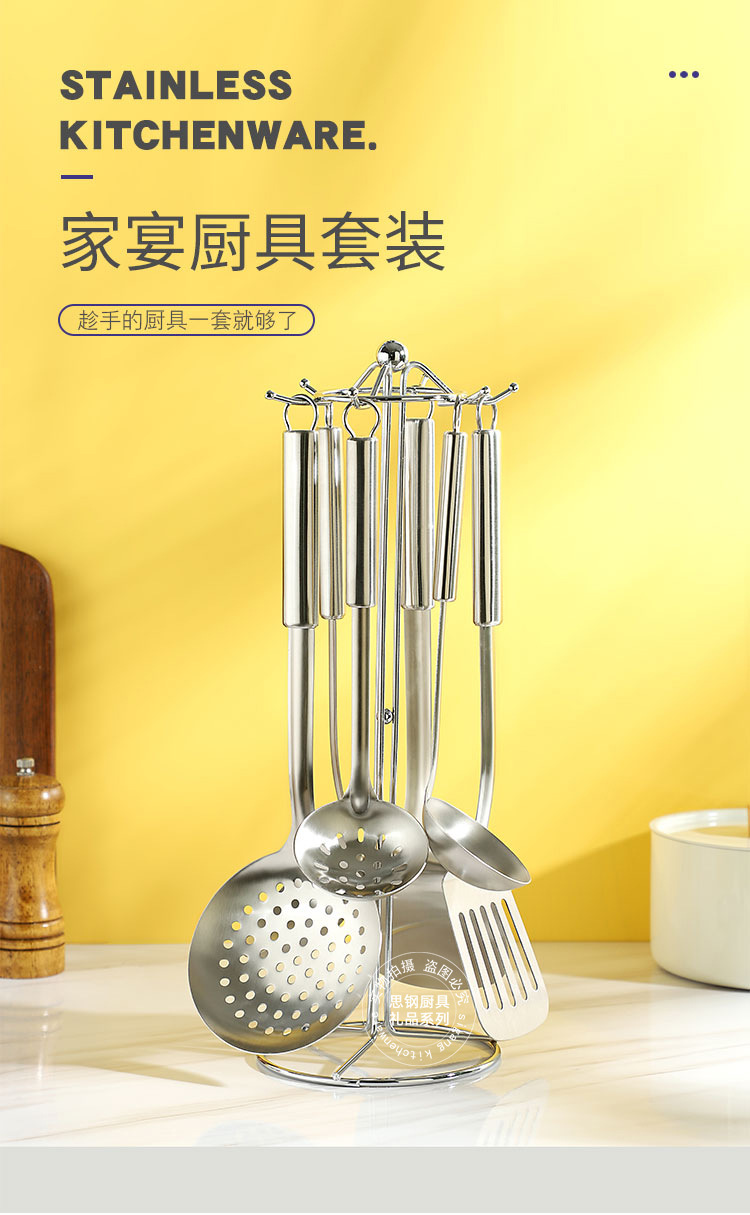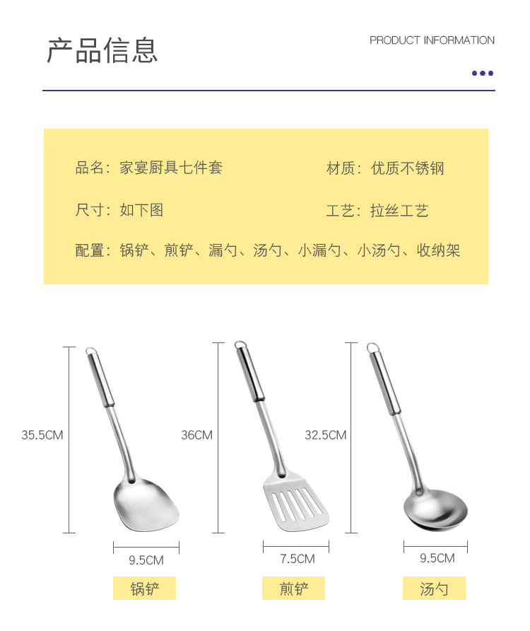产品规格 :煎铲、炒铲、汤勺、大漏勺、小汤勺、小汤漏,挂架