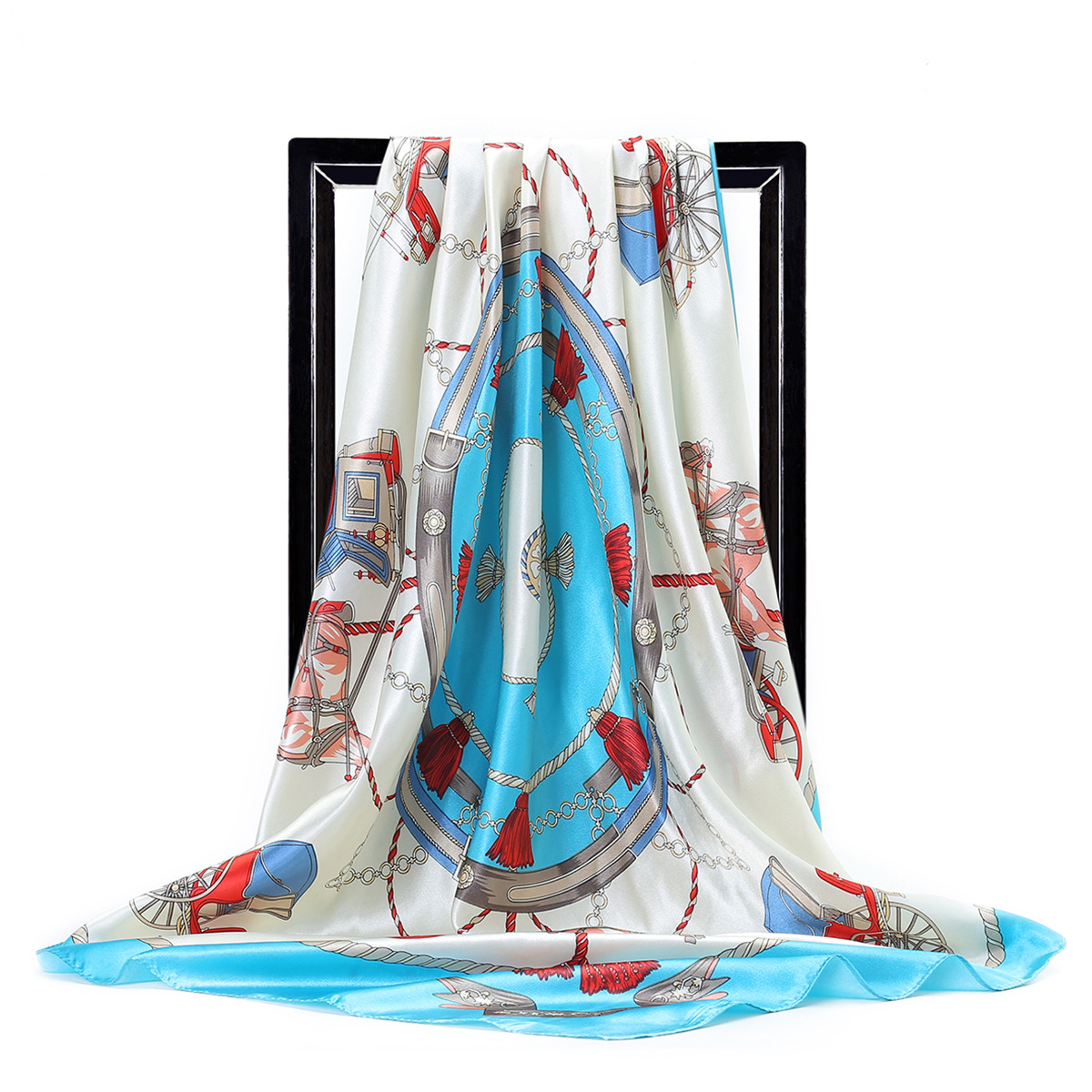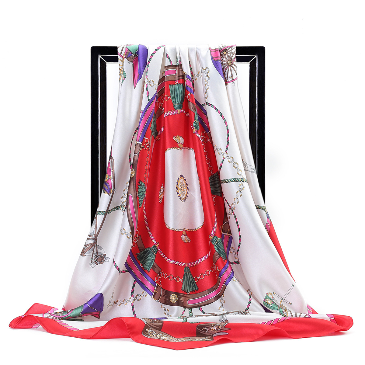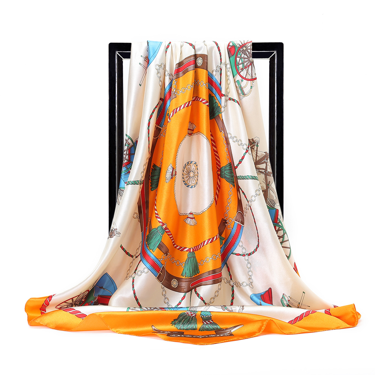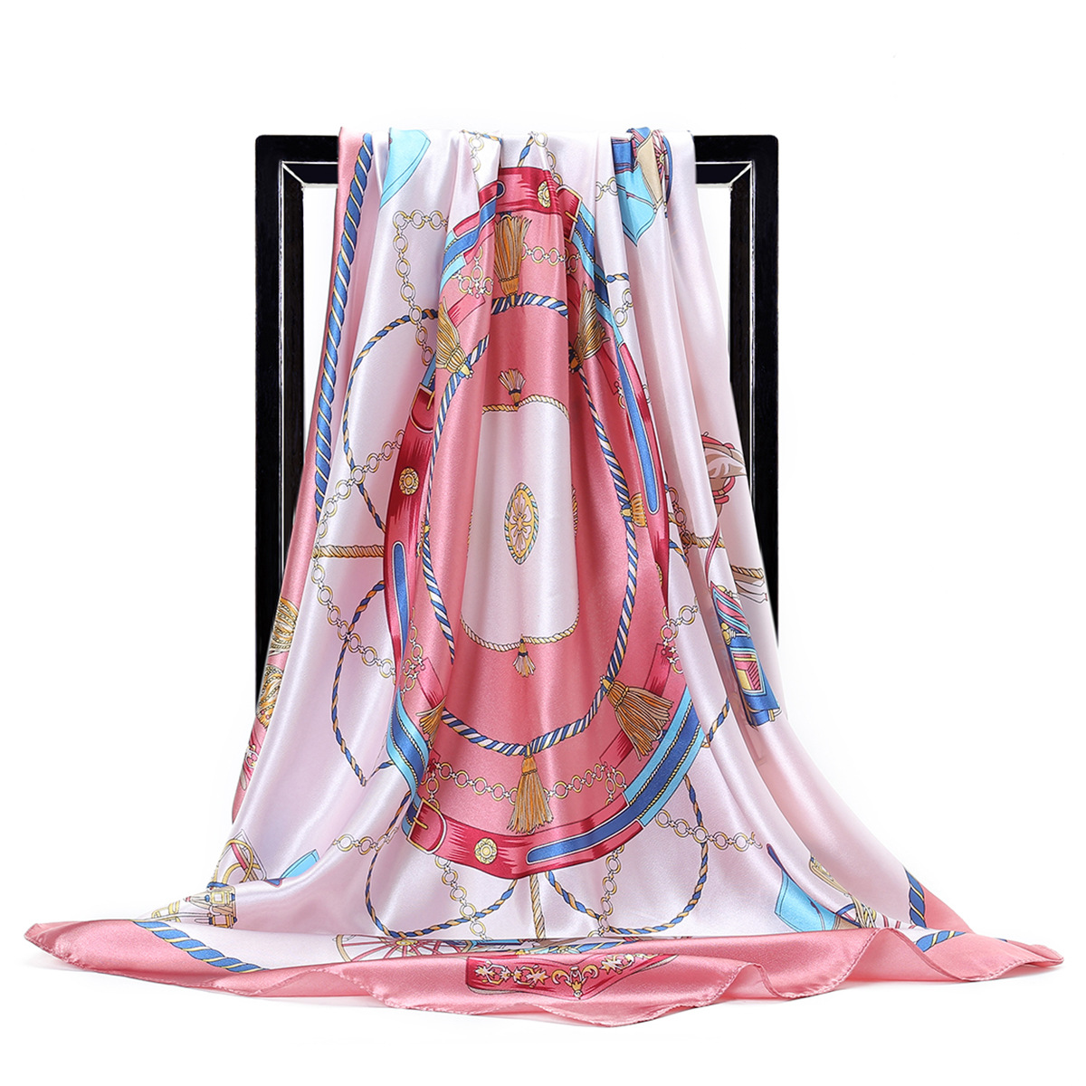 Gaohe 90CM 대형 스퀘어 스카프 유럽과 미국 체인 술 로프 인공 실크 스카프 여성 스카프 선물스토어 가기