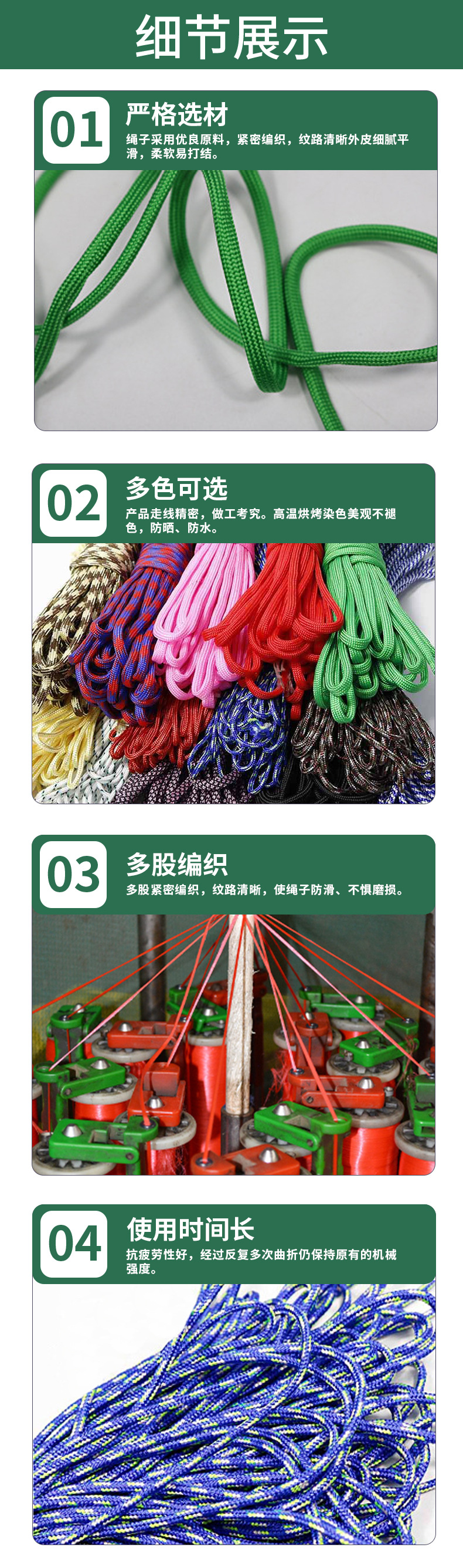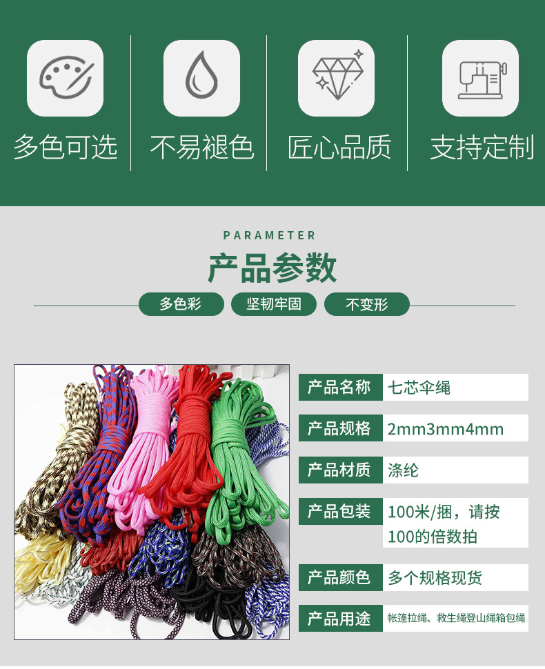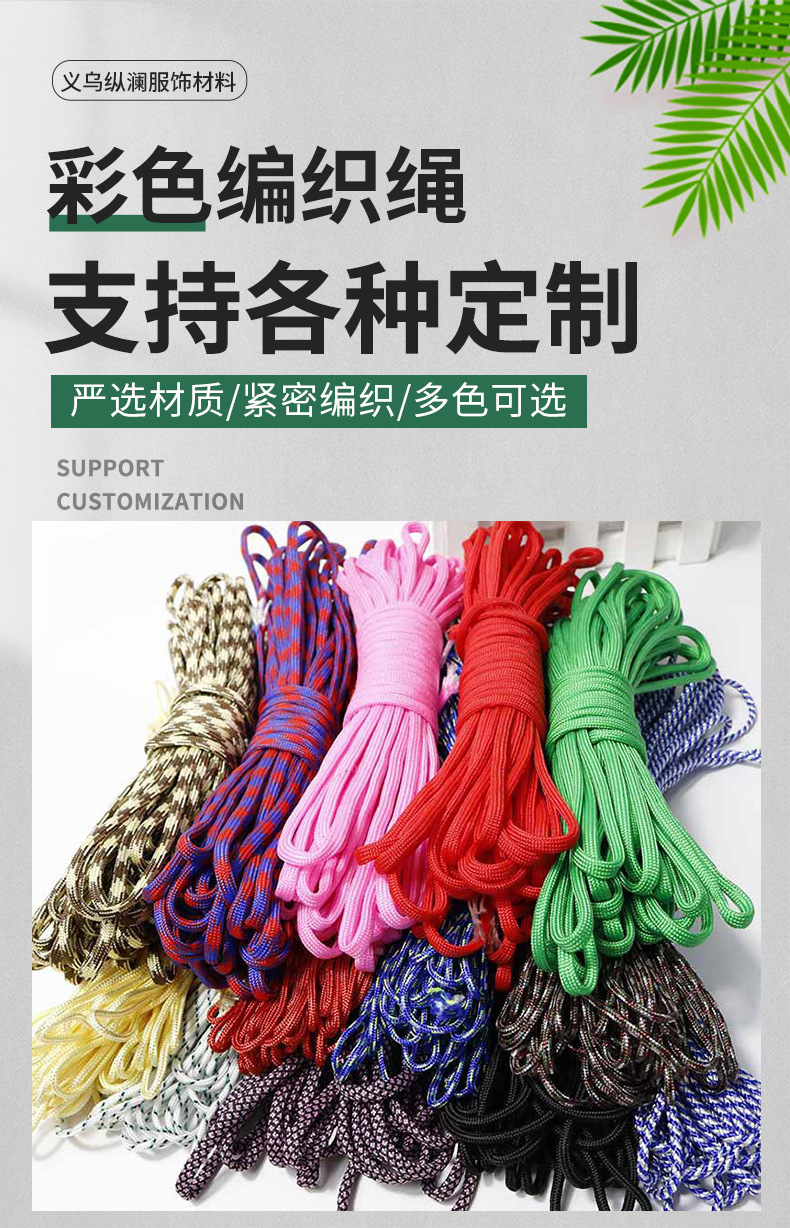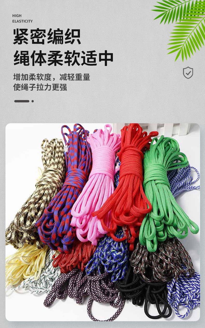 싱글 코어 7 심 우산 로프 2mm-4mm 폴리에스터 로프 단색 코어 회전 로프 아웃도어 용품 번들