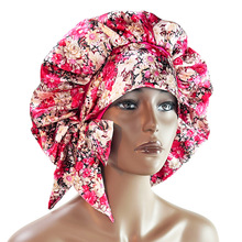 大号双层色丁睡帽印花宽边家居帽+飘带套装非洲发护发帽跨境欧美