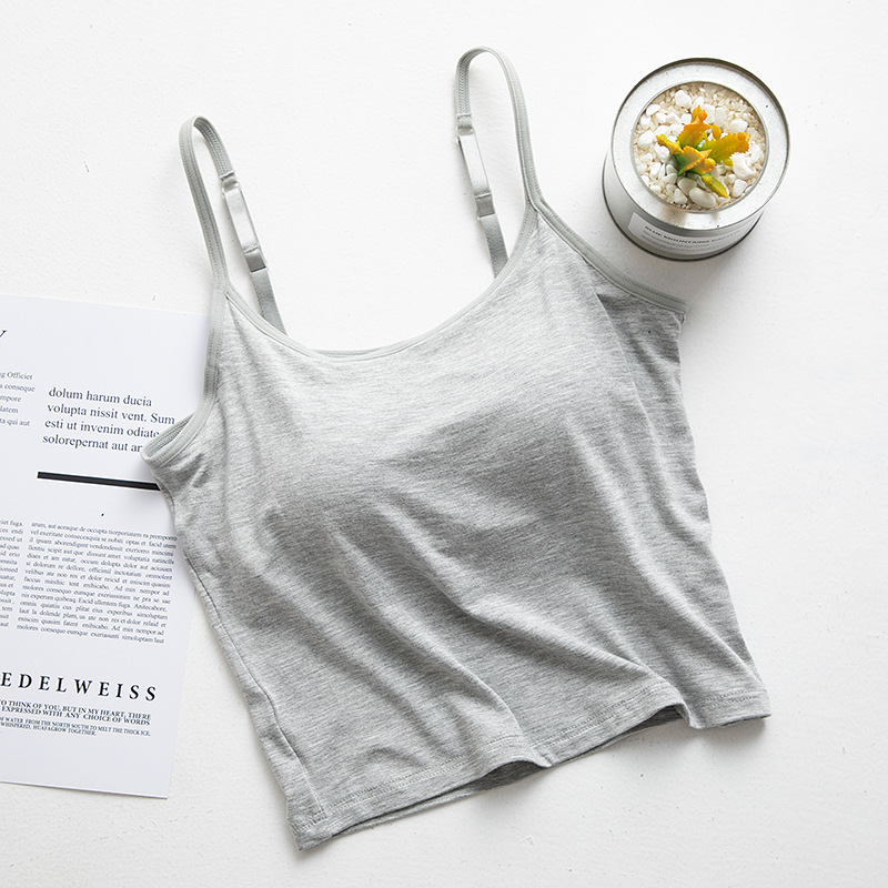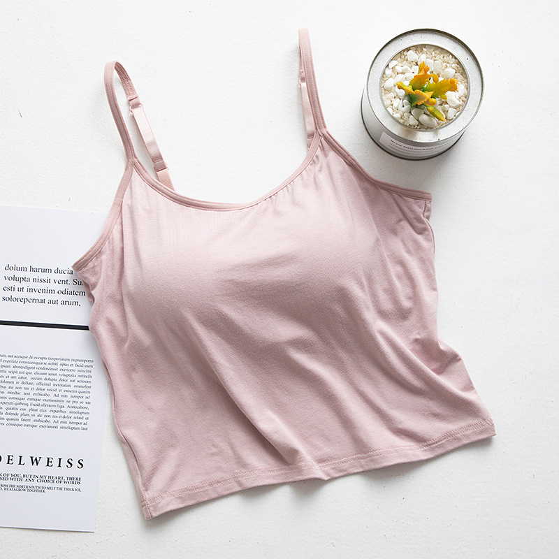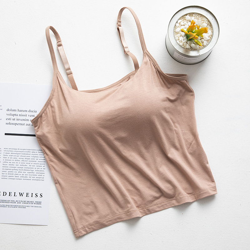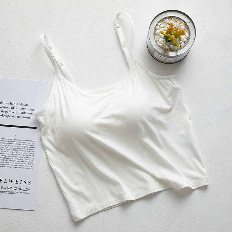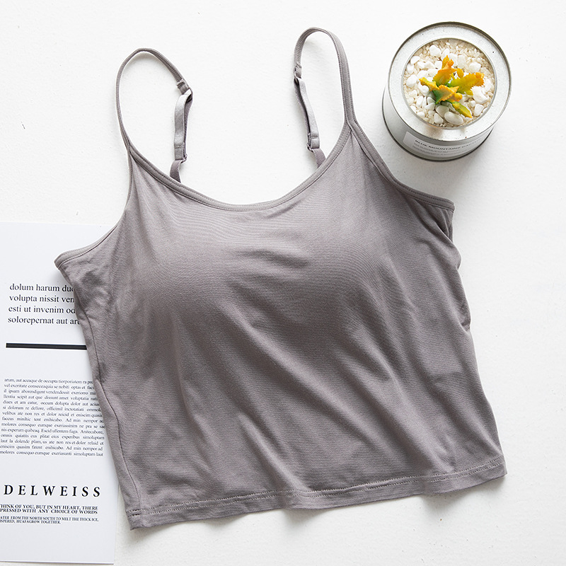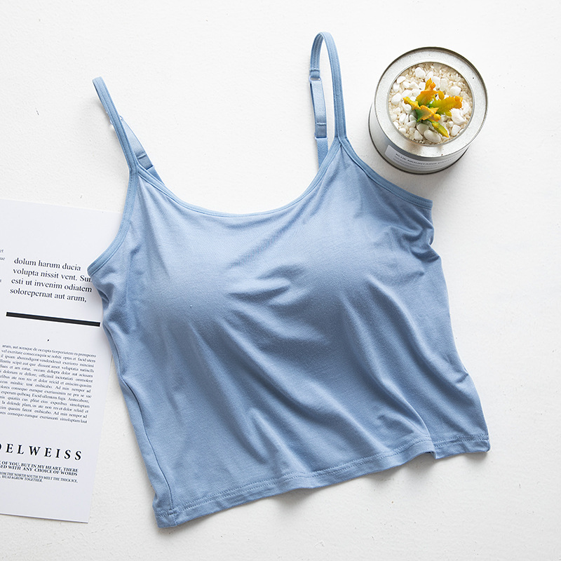 여성용 가슴 패드 컵 원피스 요가베이스 반절 노출 허리와 배꼽 짧은 캐미솔 모달
