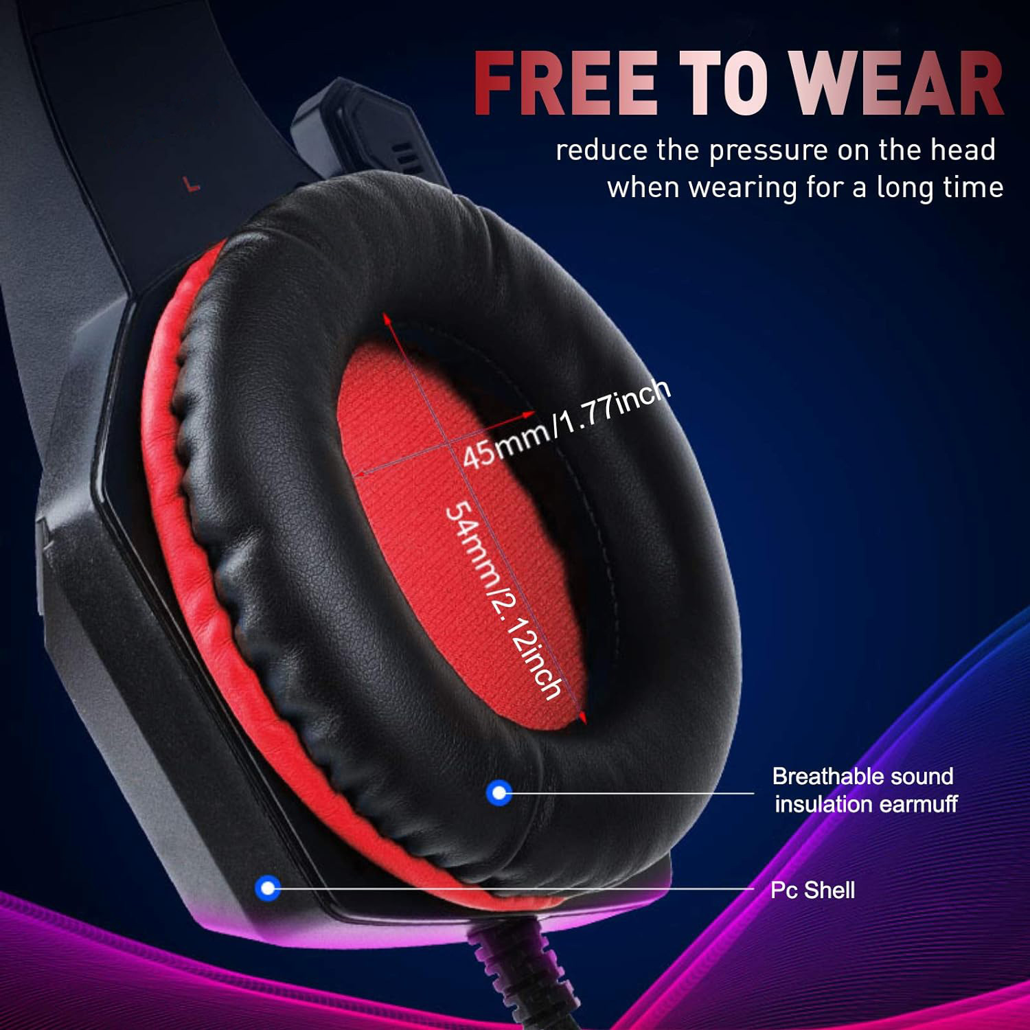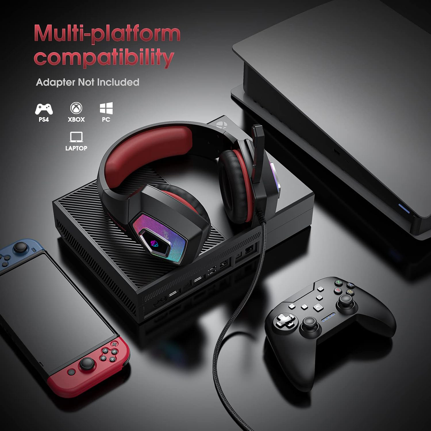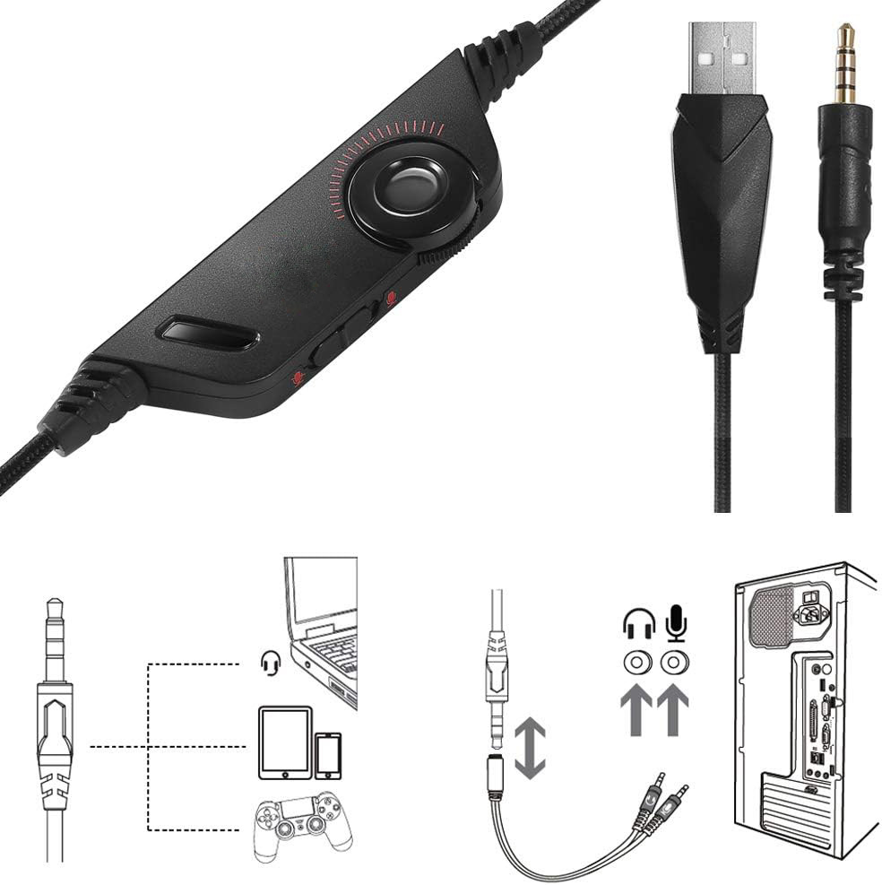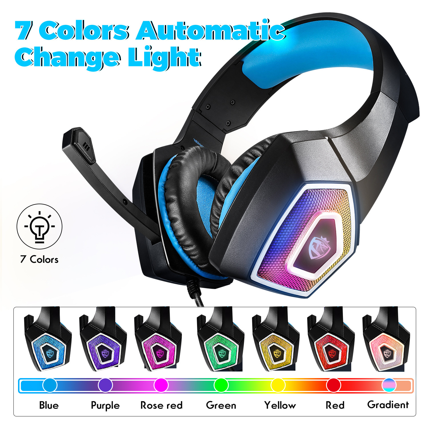 PS4游戏耳机,带有麦克风的有线PC游戏耳机,3.5mm过耳低音立体声,控制噪音,用于Xbox One S的彩色LED灯,Nintendo开关,PC,笔记本电脑,平板电脑,手机