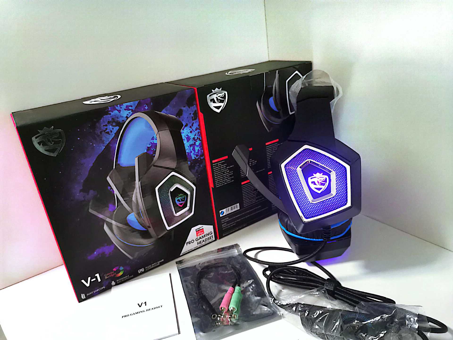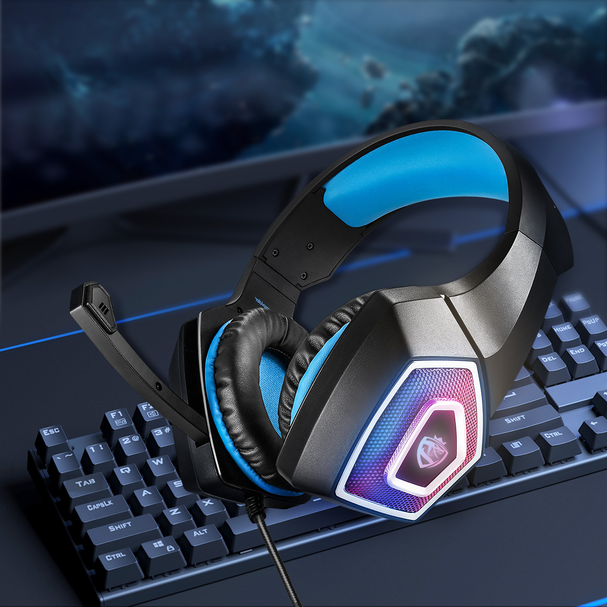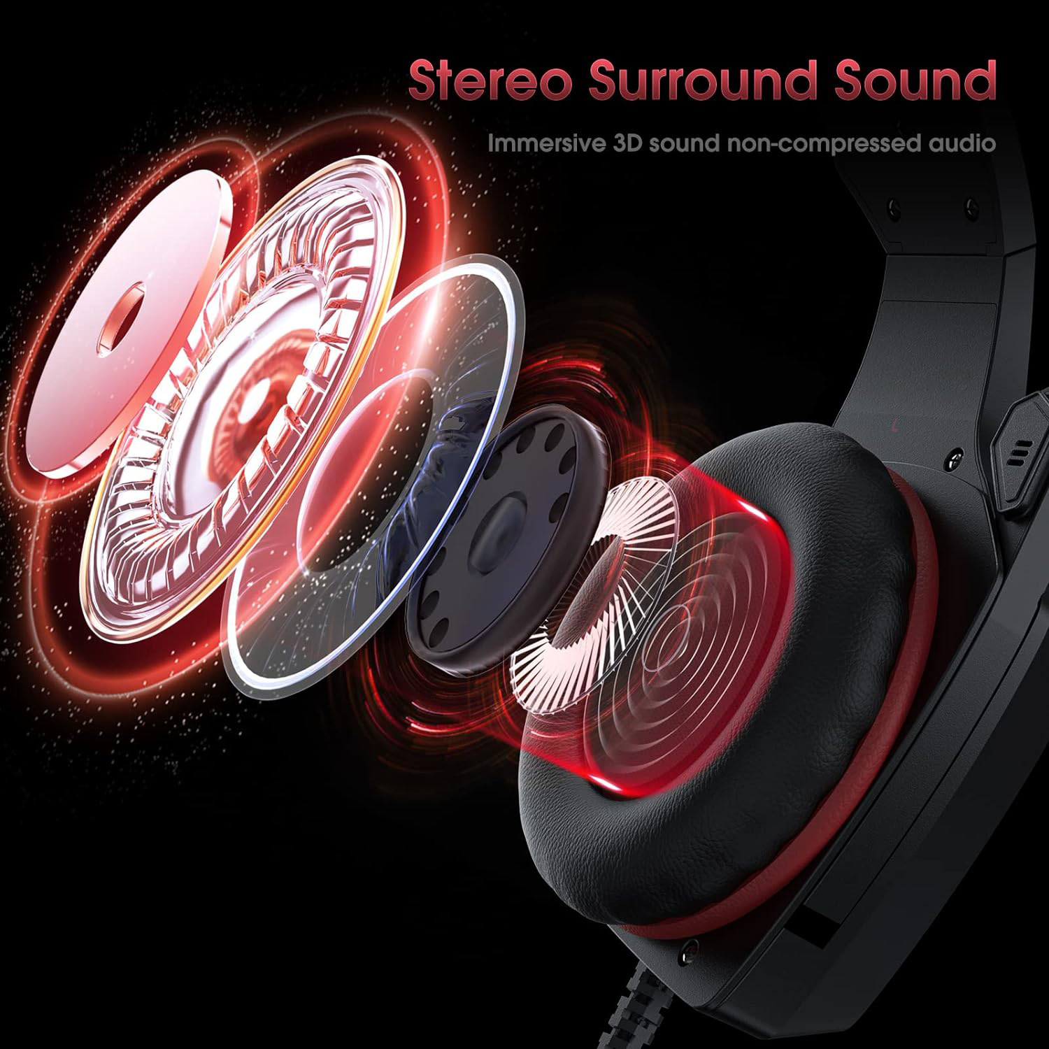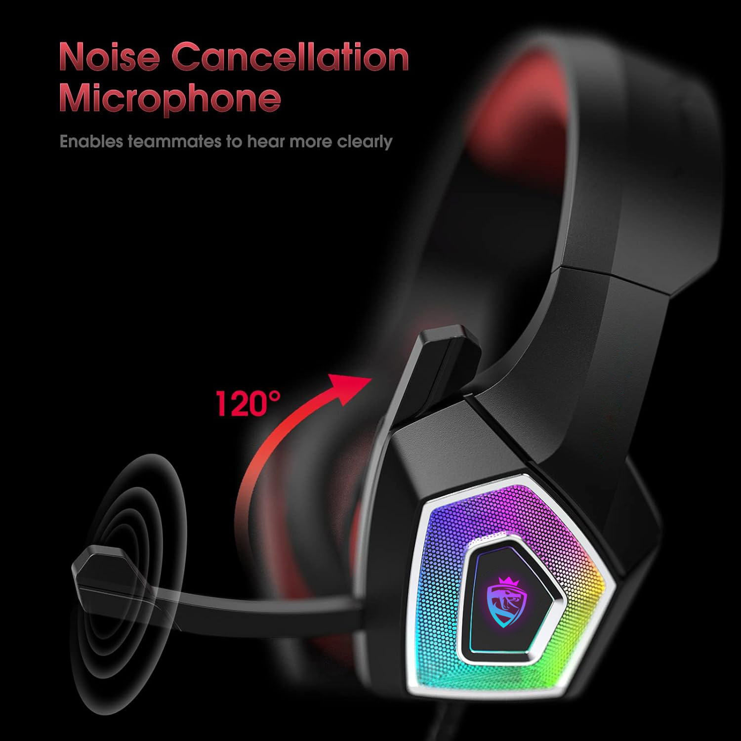 PS4游戏耳机,带有麦克风的有线PC游戏耳机,3.5mm过耳低音立体声,控制噪音,用于Xbox One S的彩色LED灯,Nintendo开关,PC,笔记本电脑,平板电脑,手机