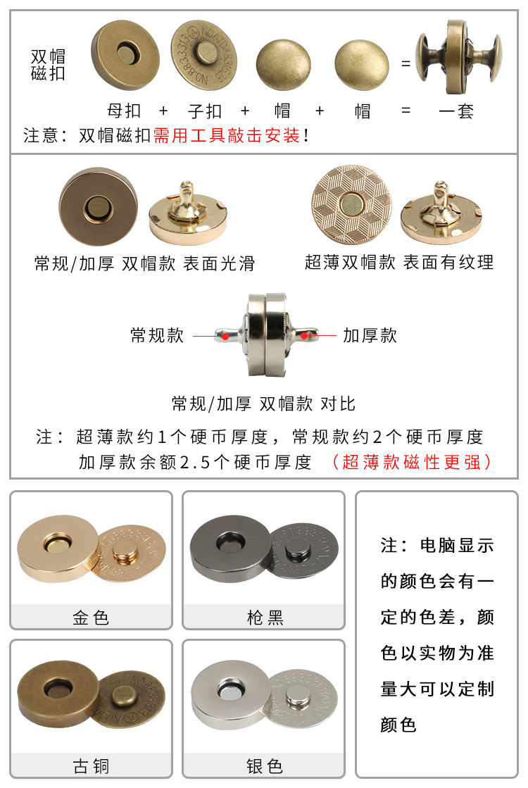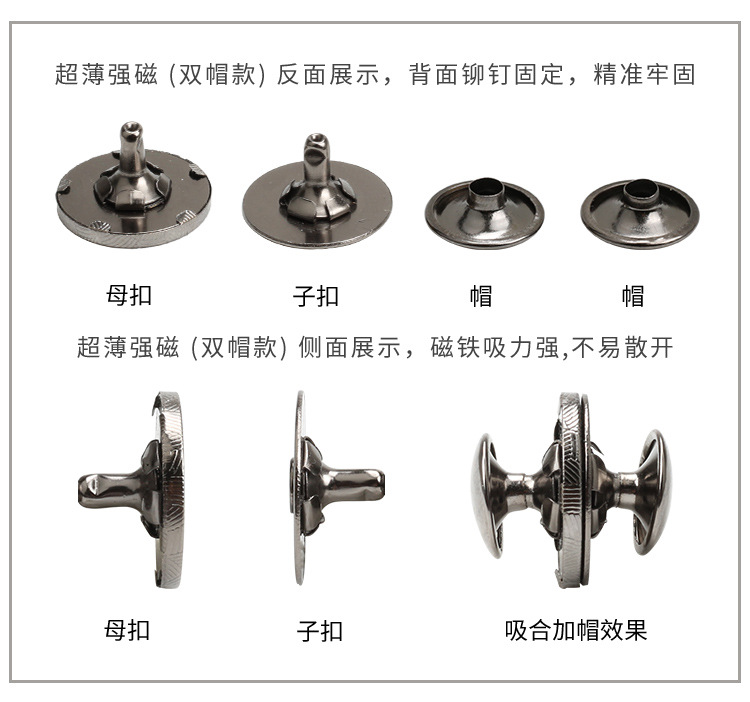 공장 도매 이음새가없는 양면 자기 버클 금속 멀티 컬러 네일 버클 마그네틱 버클 수하물 더블 모자 액세서리 마그네틱 버클