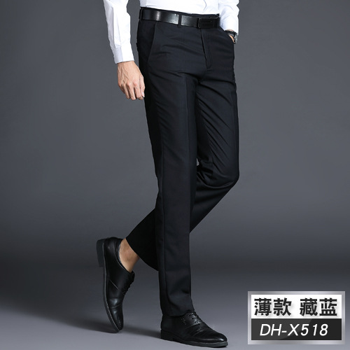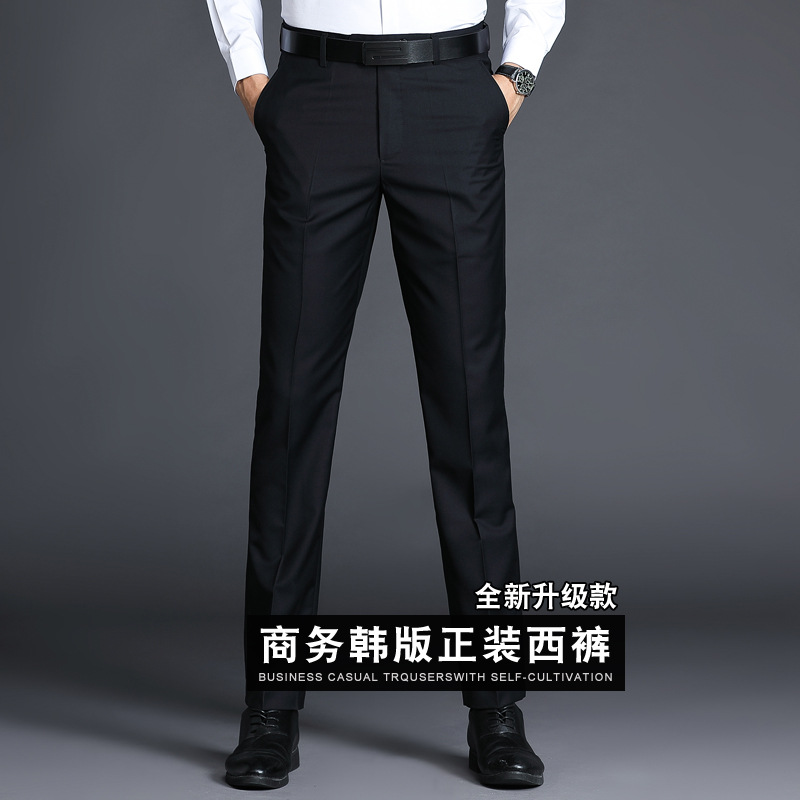 비즈니스 바지 남성용 봄과 여름 얇은 비 다림질 블랙 원피스 슬림핏 한국 스타일 남성 바지 캐주얼 스트레이트 레그 팬츠