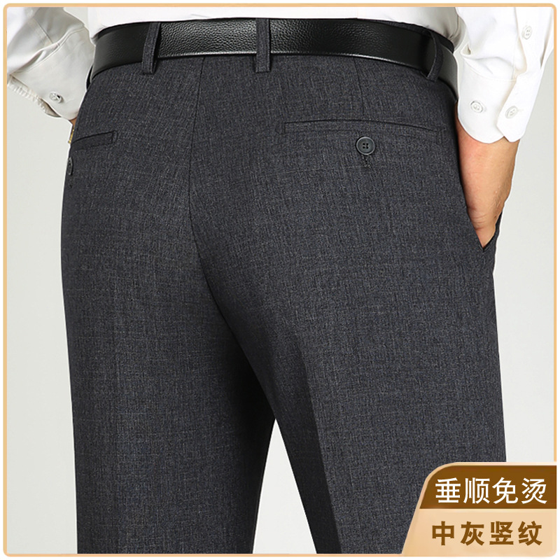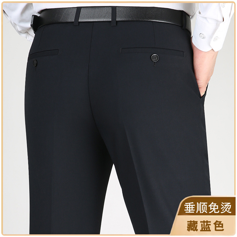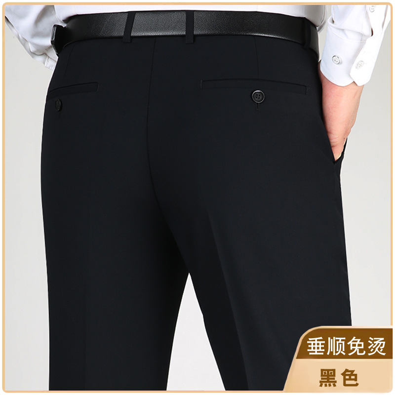 비즈니스 바지 남성용 봄과 여름 얇은 비 다림질 블랙 원피스 슬림핏 한국 스타일 남성 바지 캐주얼 스트레이트 레그 팬츠스토어 가기