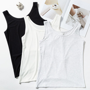 노출 방지 슬림핏 모달 민소매 여성용 탑, 외출용 또는 이너웨어로 활용 가능, 다용도 기본 셔츠, 흑백 단색, 레이스 디자인스토어 가기
