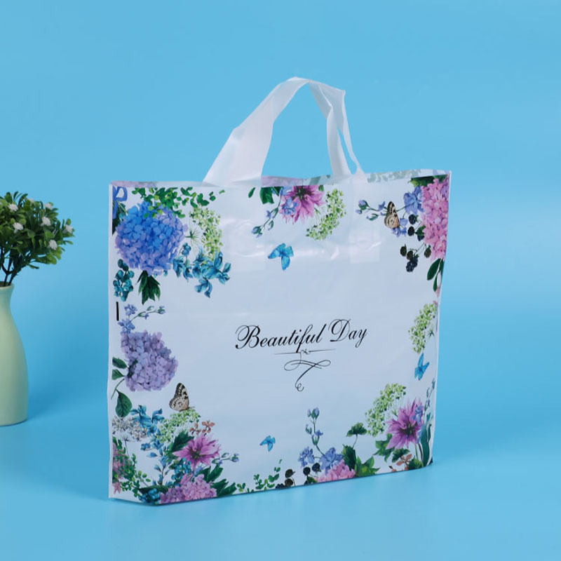 고강도 패션 컬러 인쇄 쇼핑백 도매 의류 매장 PE 오목 바닥 휴대용 포장 가방 대량 및 우수한 가격스토어 가기
