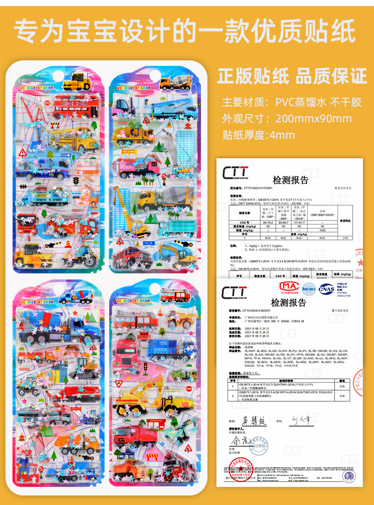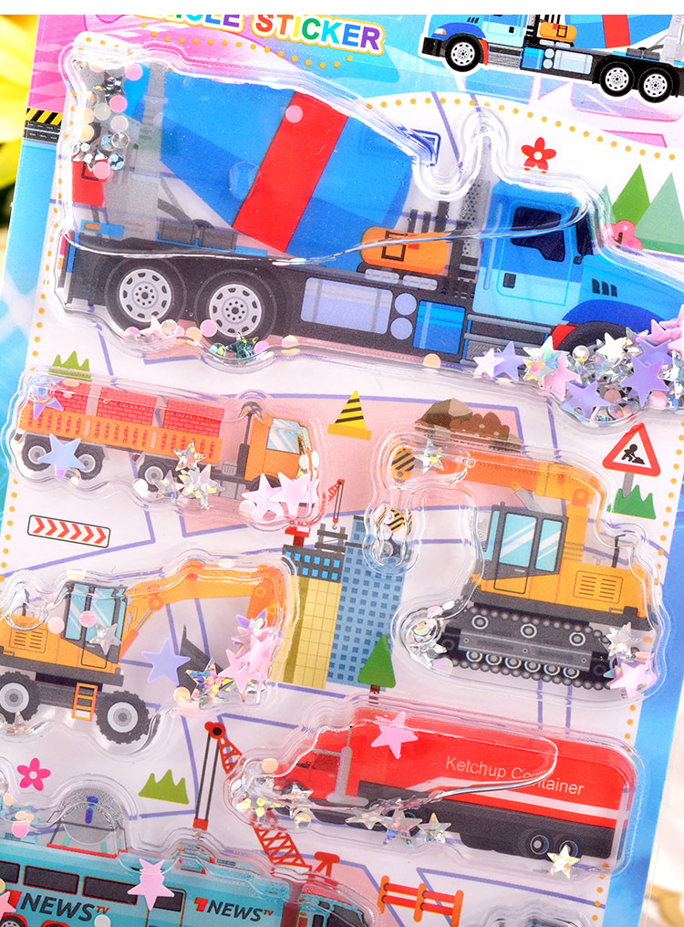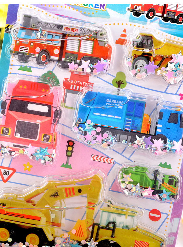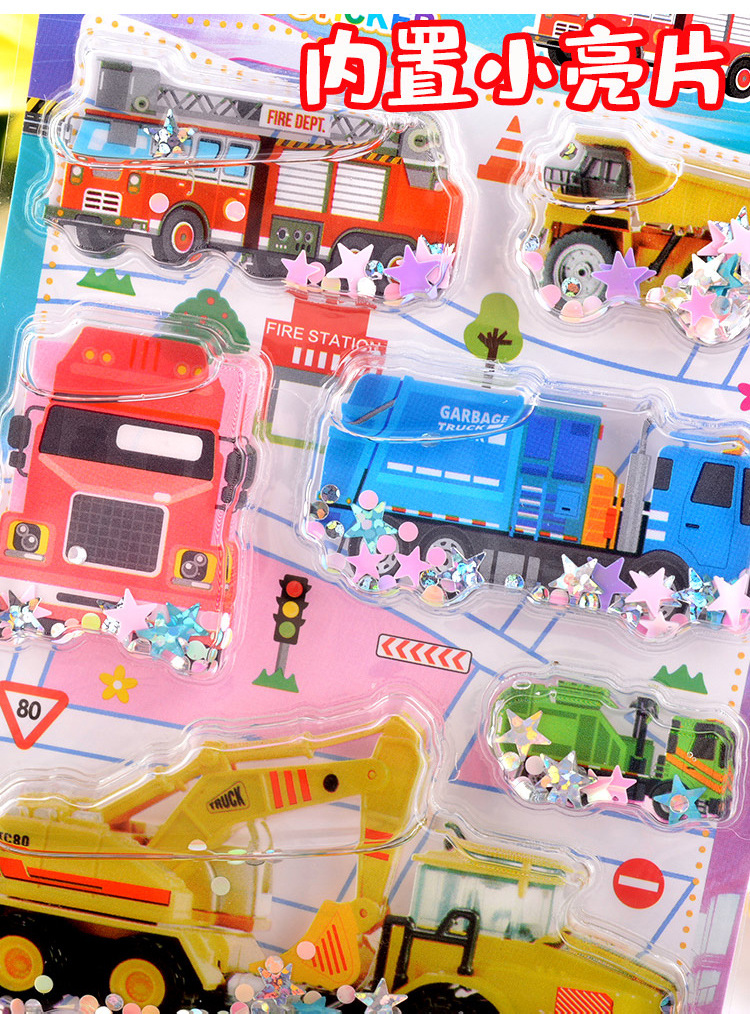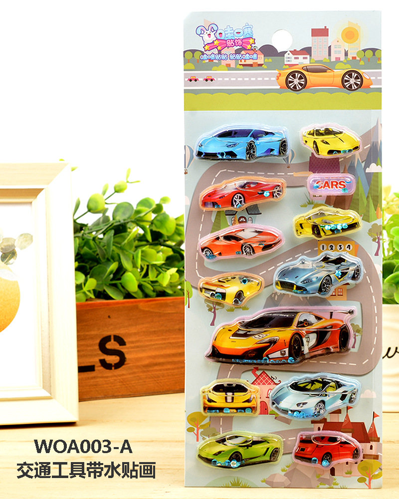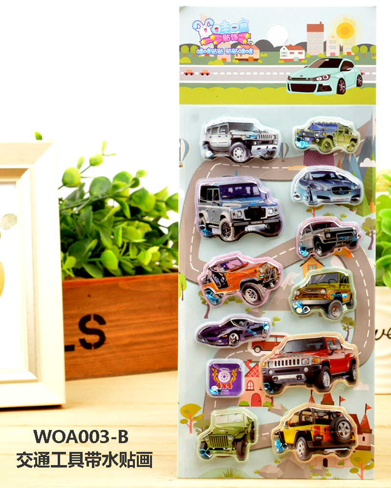 와우, 어린이 장난감 3 차원 3D 물 및 기름 스티커 물 스티커가있는 운송 차량 크리스탈 스티커스토어 가기
