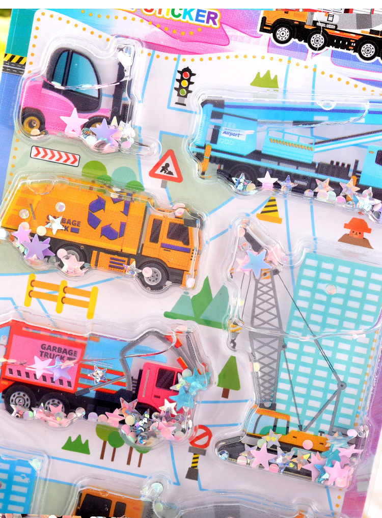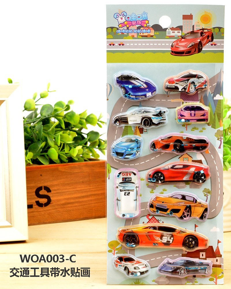 와우, 어린이 장난감 3 차원 3D 물 및 기름 스티커 물 스티커가있는 운송 차량 크리스탈 스티커